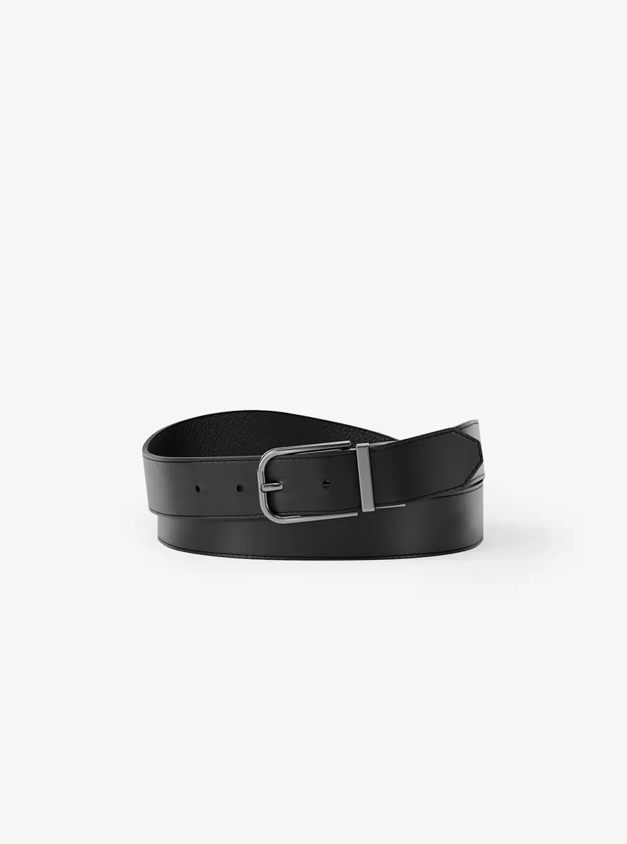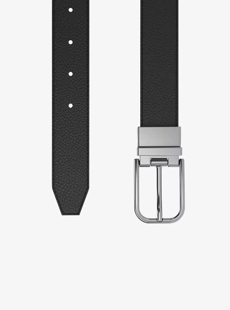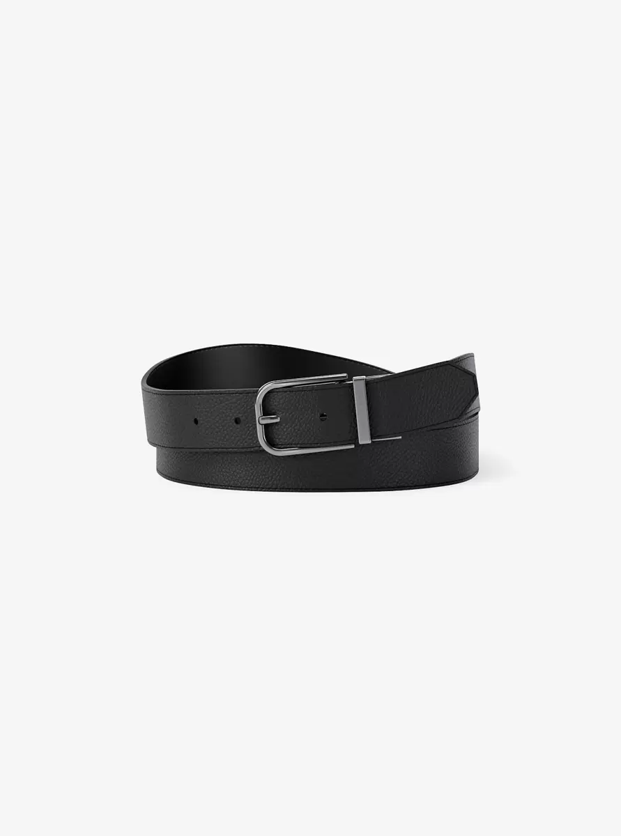 Classic and versatile, this belt is crafted from richly textured pebbled leather with a polished gunmetal buckle and reverses to a smooth underside. It is an indispensable piece for both tailored suiting and casual weekend looks.