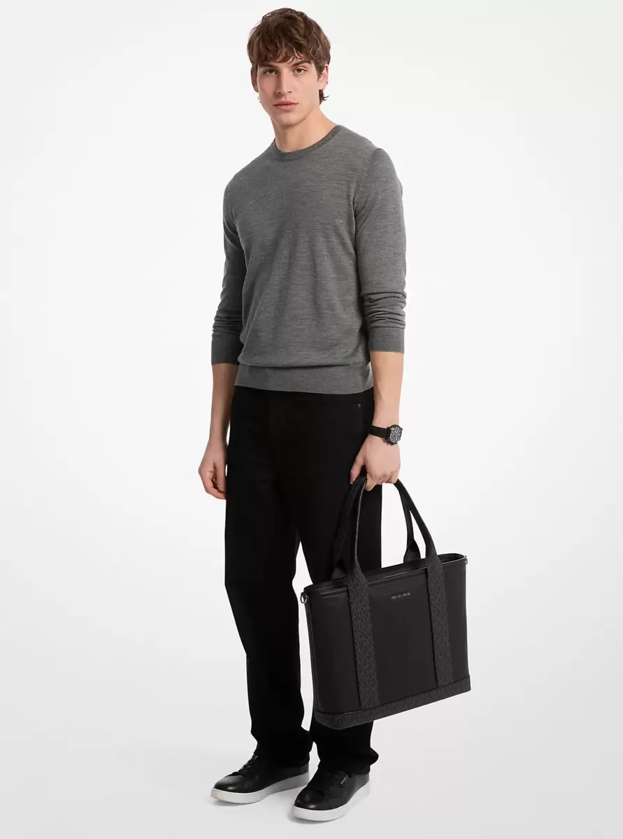 Our newest addition to the Hudson family proves the endlessly versatile nature of the beloved work tote. Crafted from durable pebbled leather with Signature logo-print trim, it opens to reveal multiple interior pockets, including a dedicated 15″ laptop compartment. You’ll love the exterior trolley sleeve and adjustable crossbody strap that make it easy to carry to school, work, and everywhere else in between.