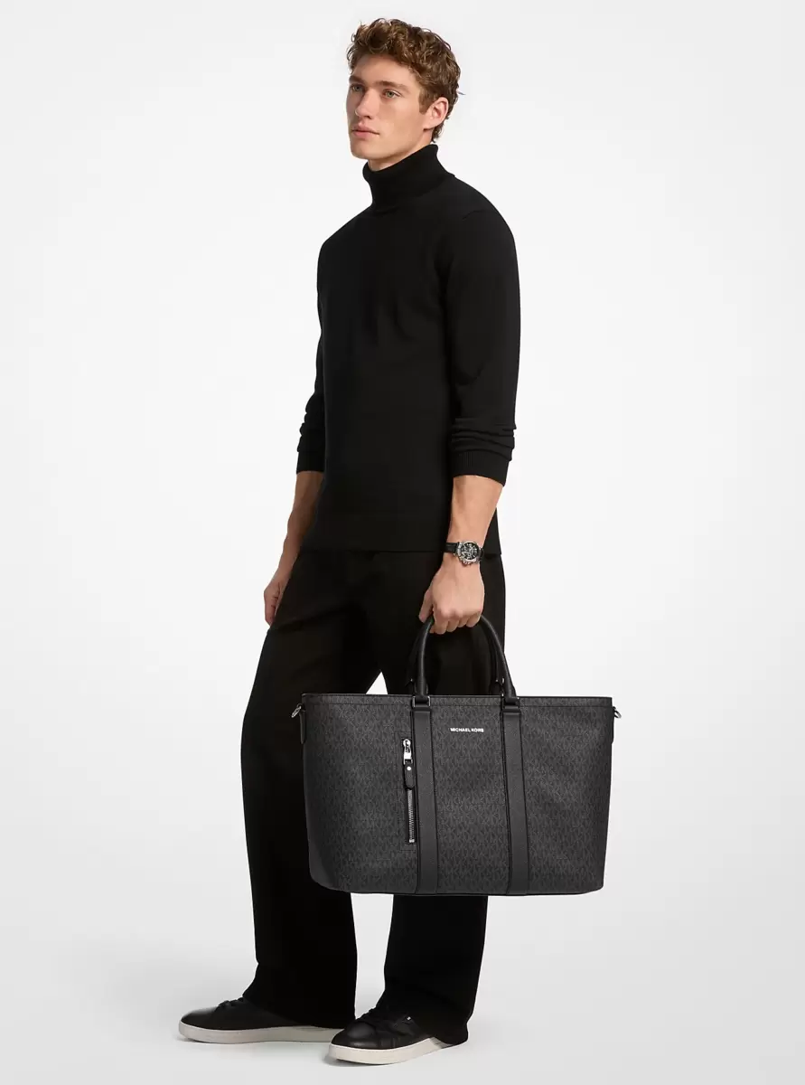Elevate your city breaks and vacations with the Hudson tote bag. Crafted from Signature logo-print canvas, the timeless design features an array of pockets for keeping your travel essentials securely stowed—including your laptop. Slip the bag onto your carryon suitcase at the airport.