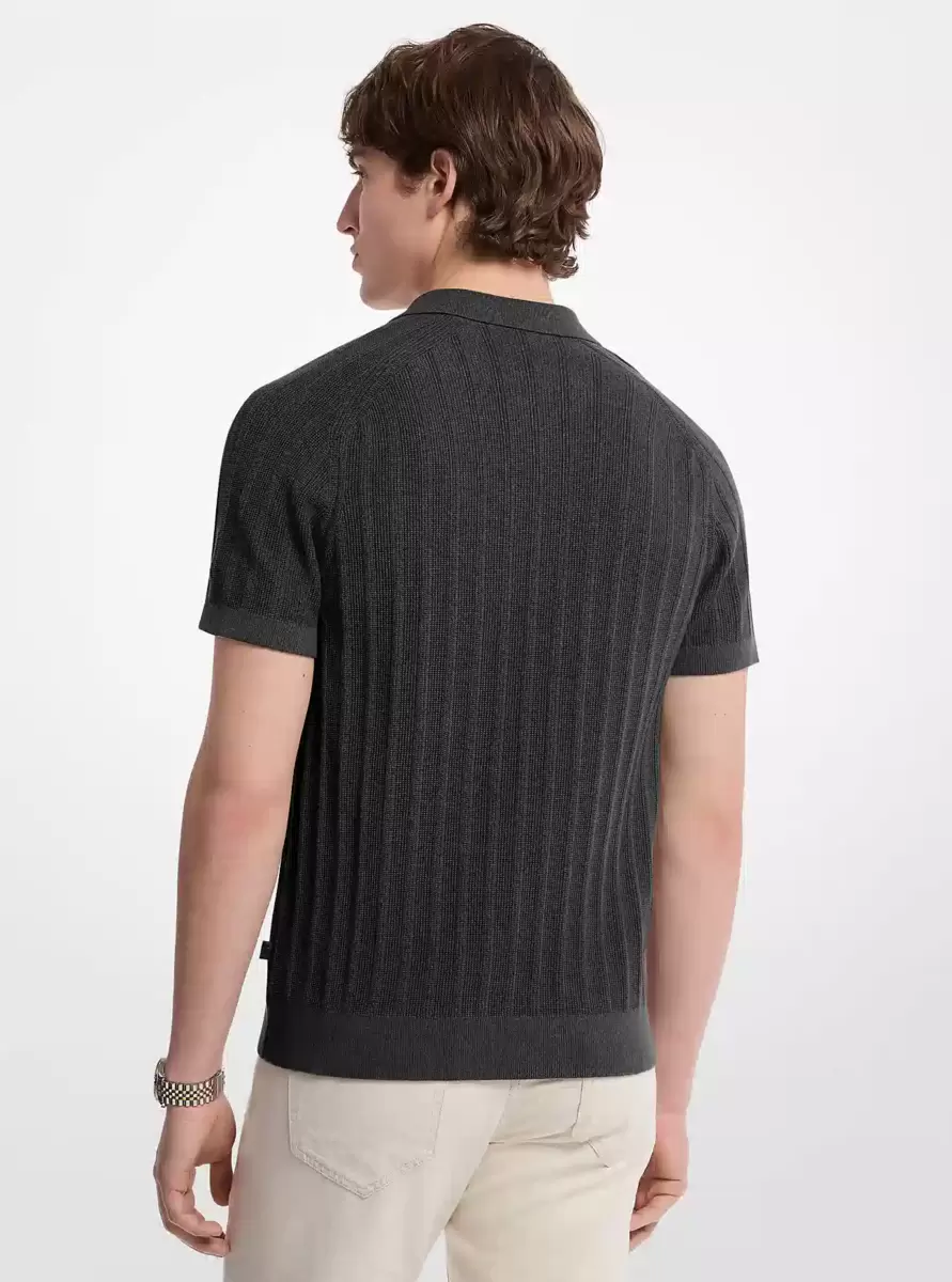 Combining the comfort of a sweater with the sportiness of a polo, this short-sleeve knit is made of soft cotton defined by textured ribs and a zip placket. For a smart-casual look, style it with tailored pants and loafers.