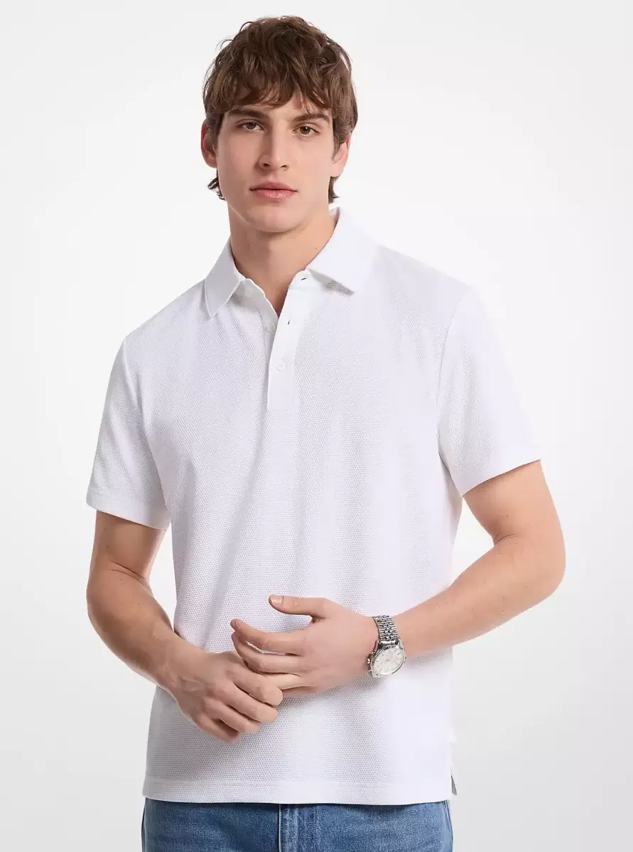 Perfect for work or the weekend, this clean-cut polo shirt is crafted from soft stretch cotton in a textural bubble knit. Style it with jeans and leather sneakers for a polished yet casual look.