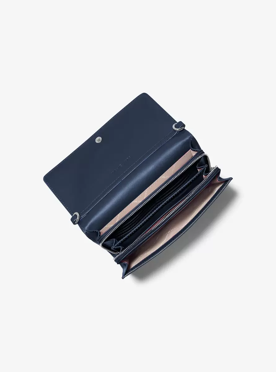 Sporty chic meets modern minimalism on this Jet Set crossbody bag. It opens to reveal a zip compartment with plenty of slip pockets for organizing bills and cards, while the nylon logo strap allows you to convert the leather silhouette into a clutch. Carry yours from day to night.
