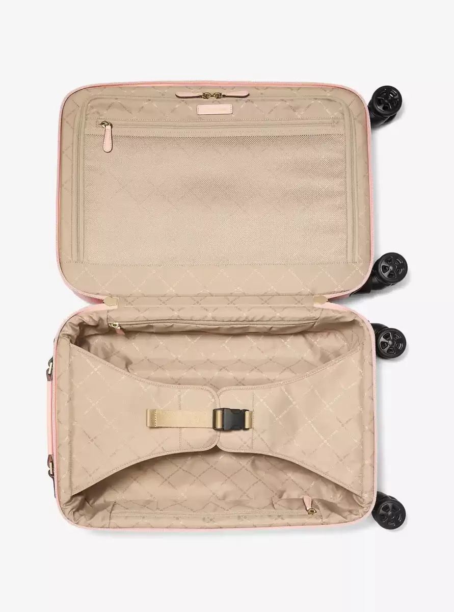 Traveling through the airport is made easy thanks to this carry-on sized Signature logo-print canvas suitcase. Complete with 360-degree spinning wheels, it’s fitted with two spacious compartments and a retractable telescope handle. The outside zip pocket is perfect for slipping your boarding pass and laptop into between flights.