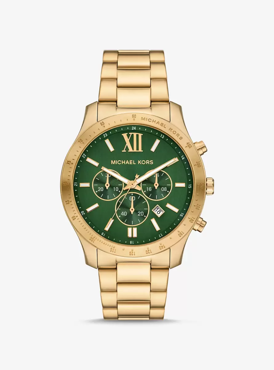 Our Berkley watch delivers style and function you can count on. It’s crafted from gold-tone stainless steel for a timeless finish, while chronograph subdials ensure accurate timekeeping. Complete with a rich green dial, it makes the perfect everyday timepiece—no matter where you’re headed.