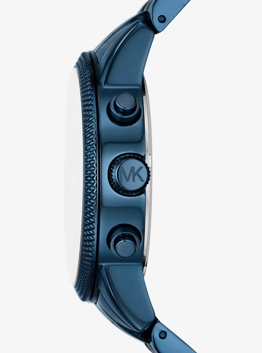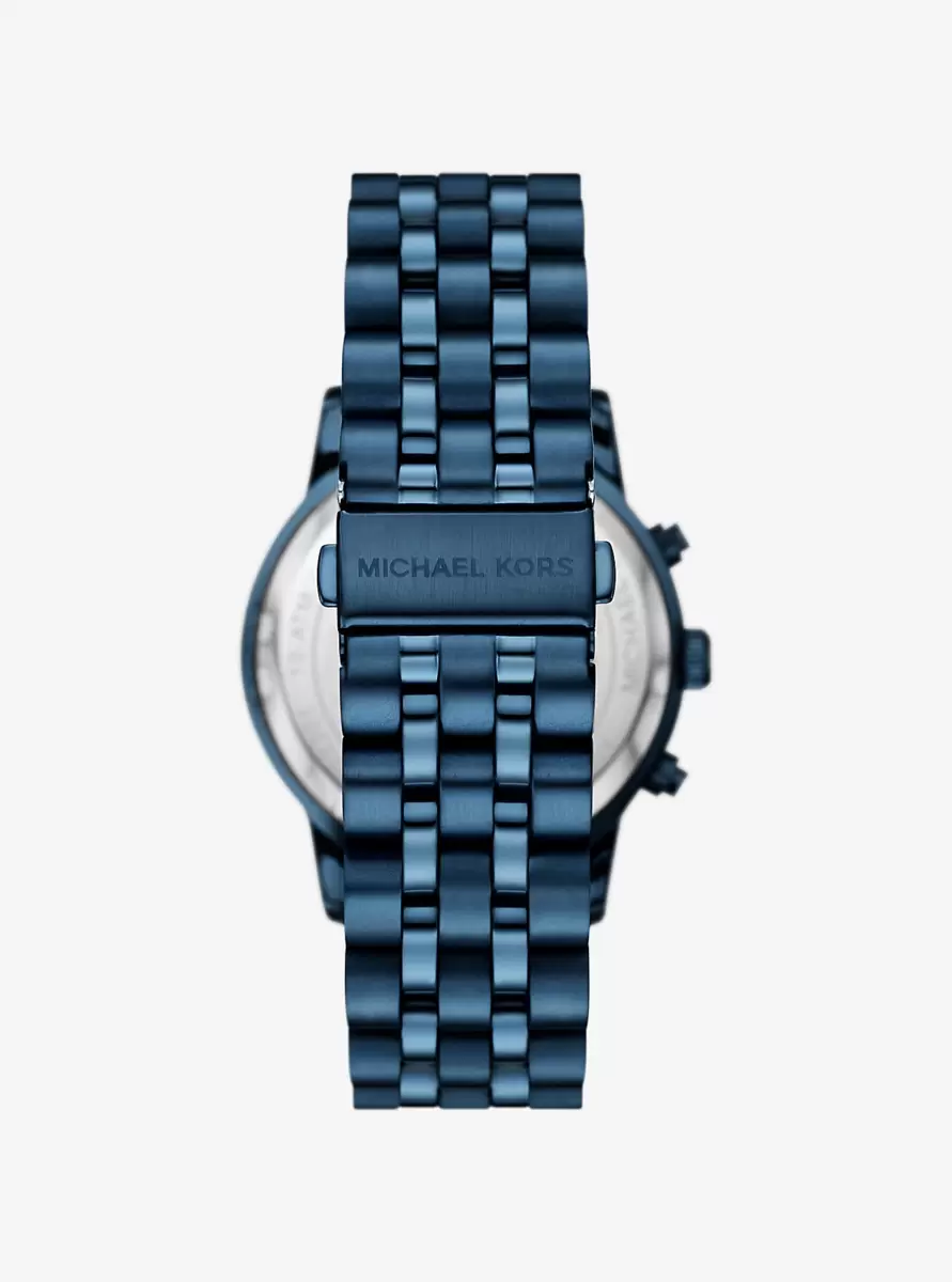 Designed for those who appreciate the luxury of time, our Hutton is the statement timepiece to own. A chronograph display delivers precision timekeeping, while blue-tone stainless steel craftsmanship ensures it will stand up to endless wear. A textured topring and “MK” print dial lends a subtle yet sophisticated finish.