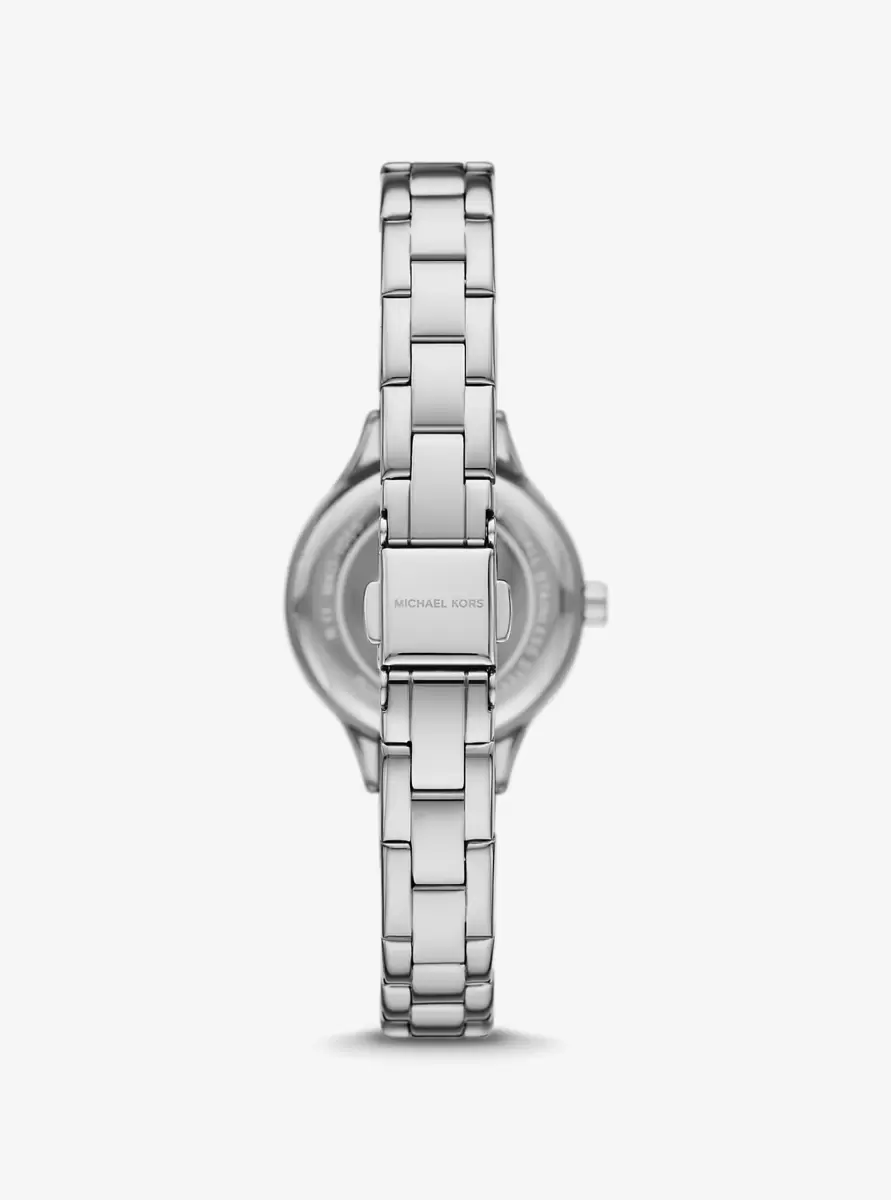 The petite Aspyn is the perfect timepiece to take your outfits up a notch. A silver-tone stainless steel finish makes for easy styling with jewelry, while the dazzling pavé dial adds a touch of everyday indulgence. This watch is guaranteed to become a talking point wherever you go, so wear it from the office to the dance floor with equal panache.