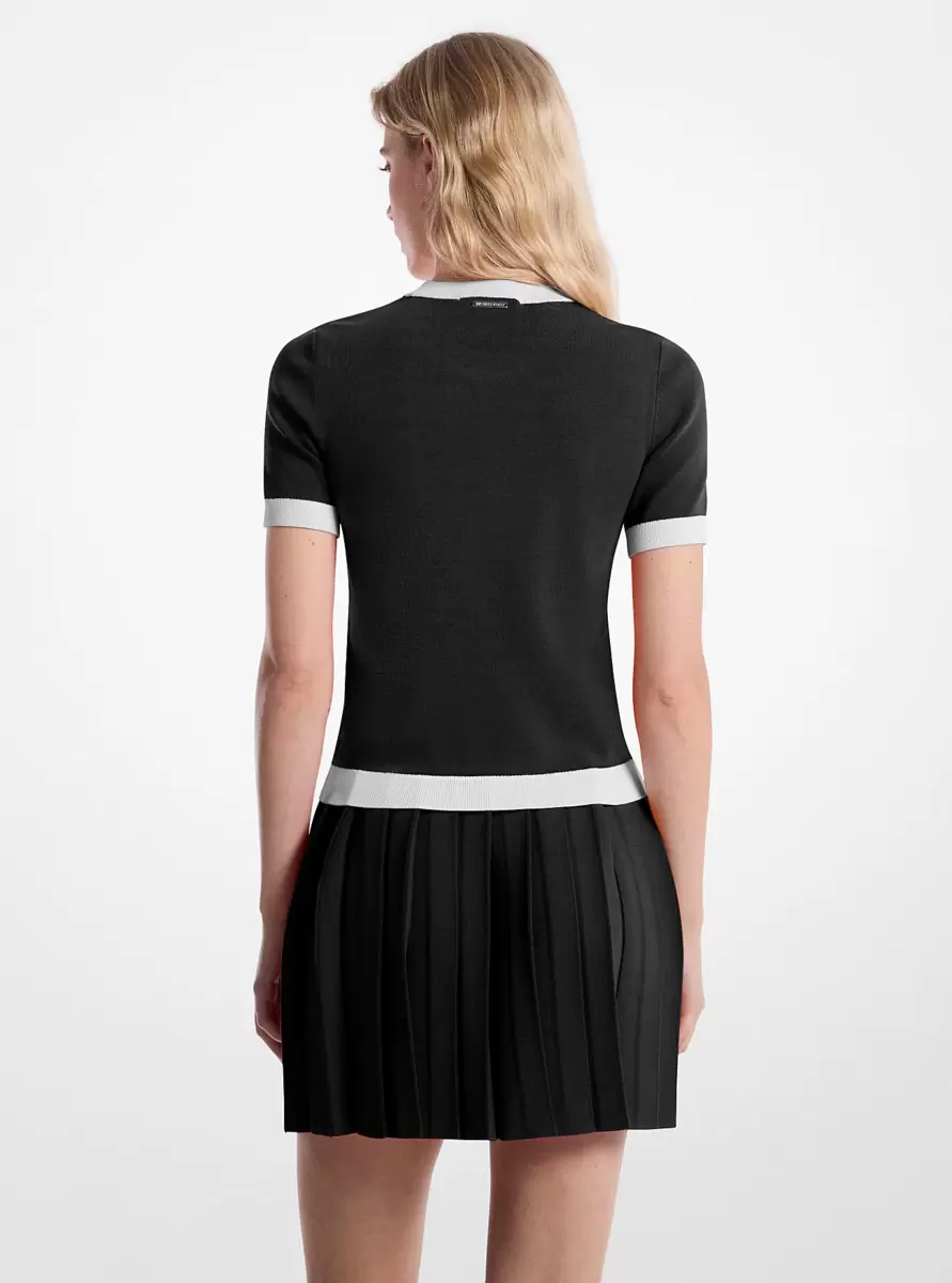 Stretch Knit Short-Sleeve Sweater