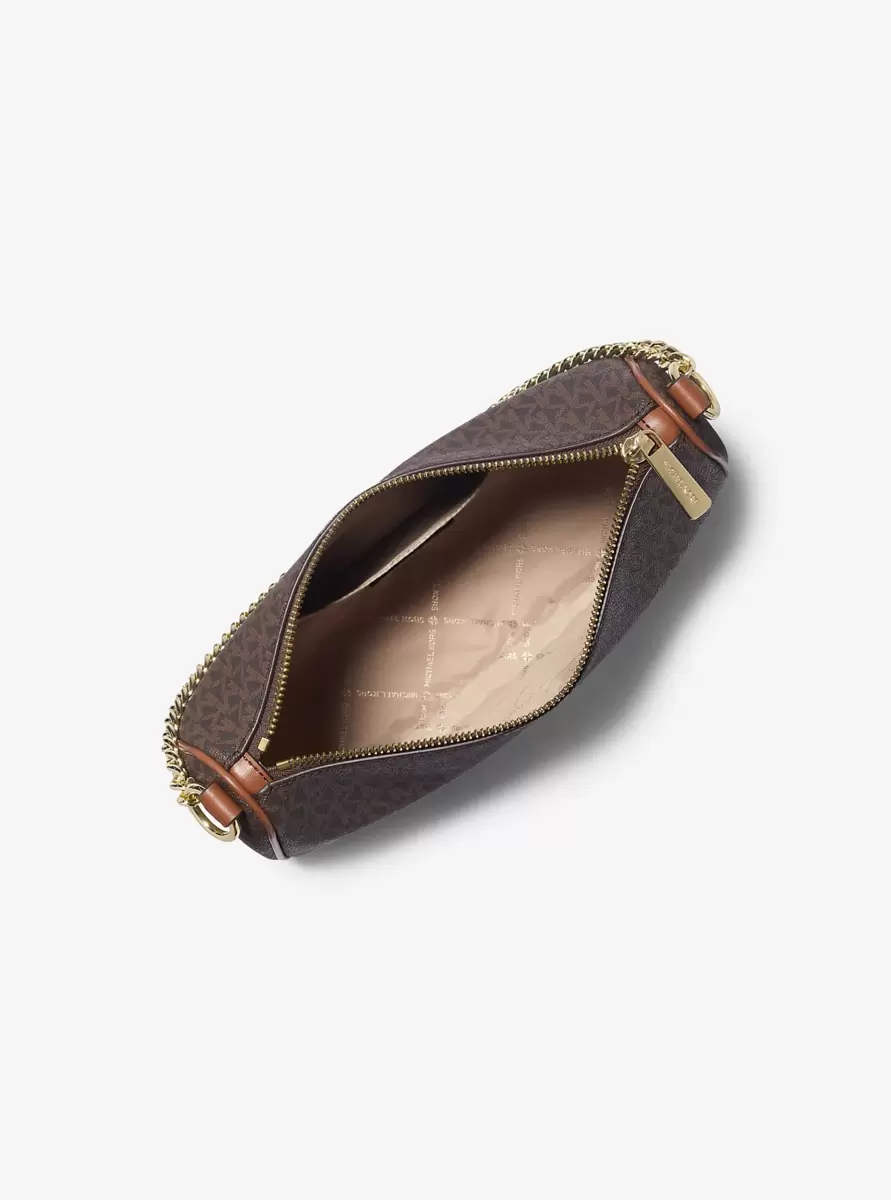 Go from day to evening with our Carmela pochette. Designed in our Signature logo-print canvas, this chic style features a detachable crossbody strap and a gleaming chain-link top handle for optionality. It unzips to reveal an open interior with a side slip pocket for your phone or keys.