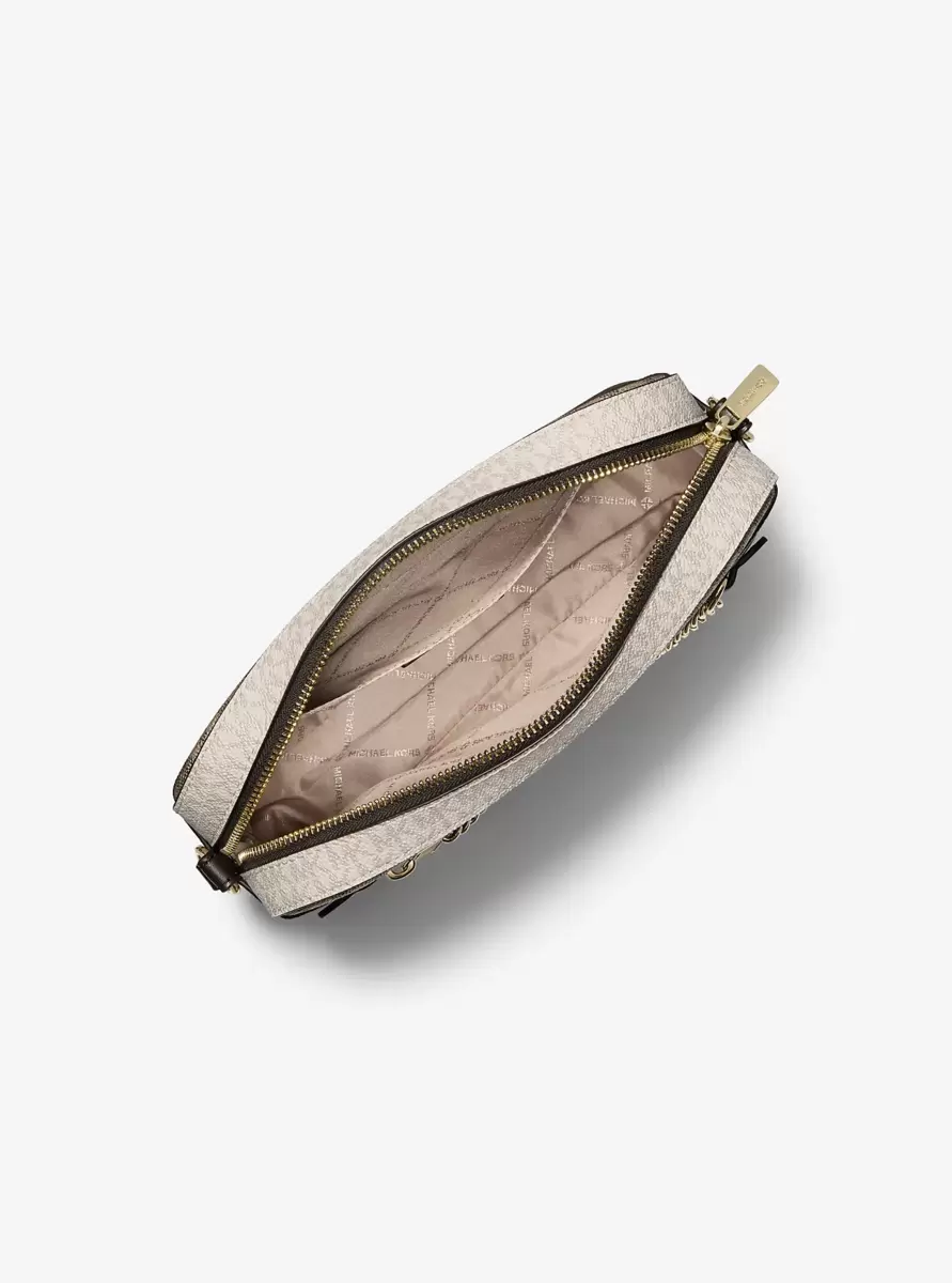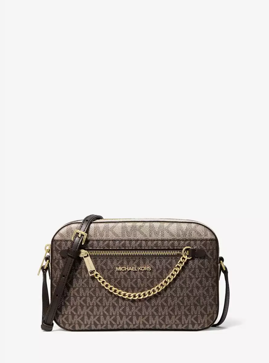 • Exterior details: front and back slip pockets, front zip pocket, detachable strap