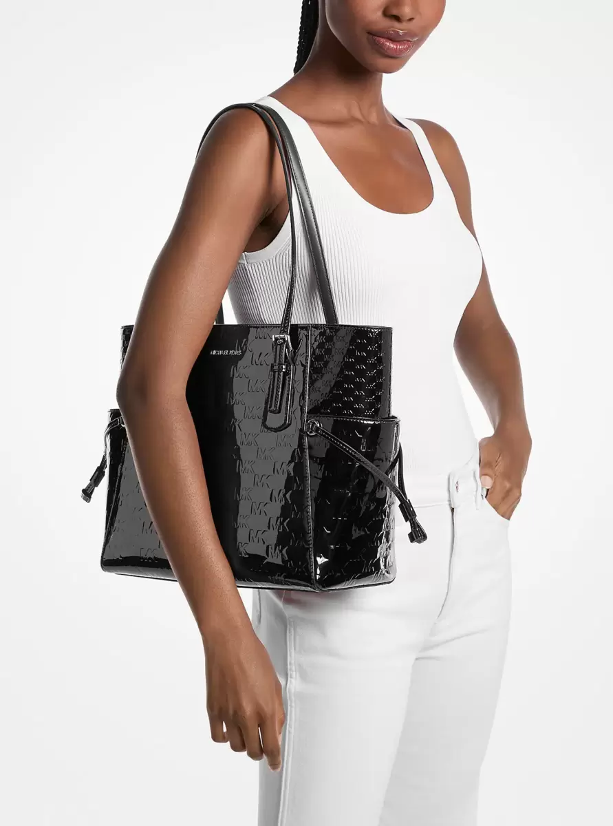 Voyager Large Patent Logo Debossed Tote Bag