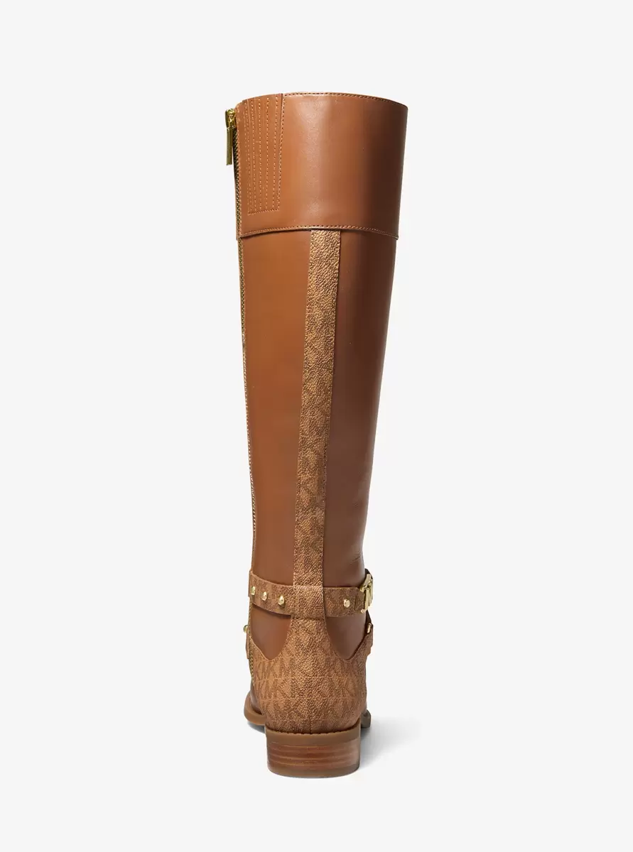 Designed in a knee-grazing silhouette with studded Signature-print canvas accents, our Kincaid boot nods to classic equestrian styles. A stacked heel provides subtle lift, while a pragmatic zip closure and sleek cross-straps at the ankle lend a polished finish. Wear them with skinny jeans and fluid dresses alike.