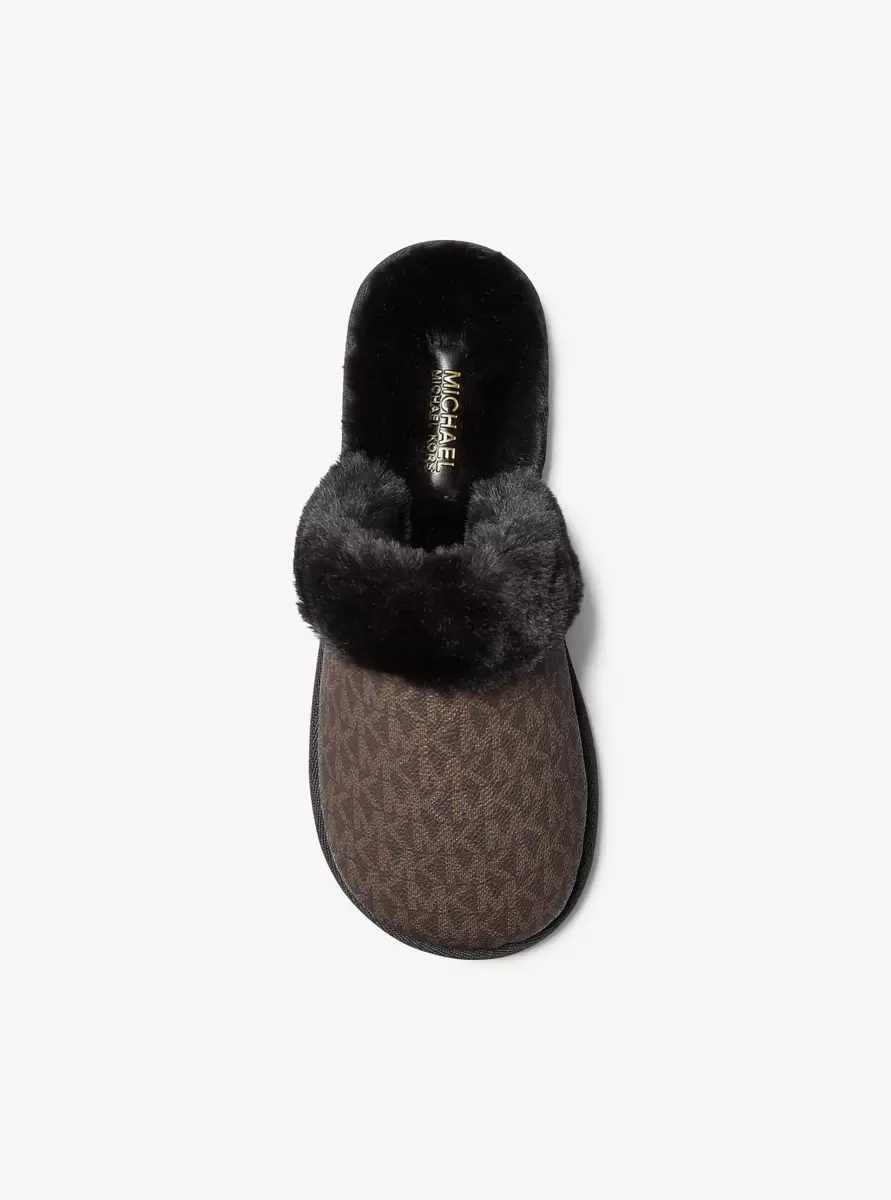 Give your leisure looks a little luxury. Our Liddy slipper is designed in Signature logo-print canvas for iconic glamour and lined with plush faux fur for cloud-like comfort with every step.