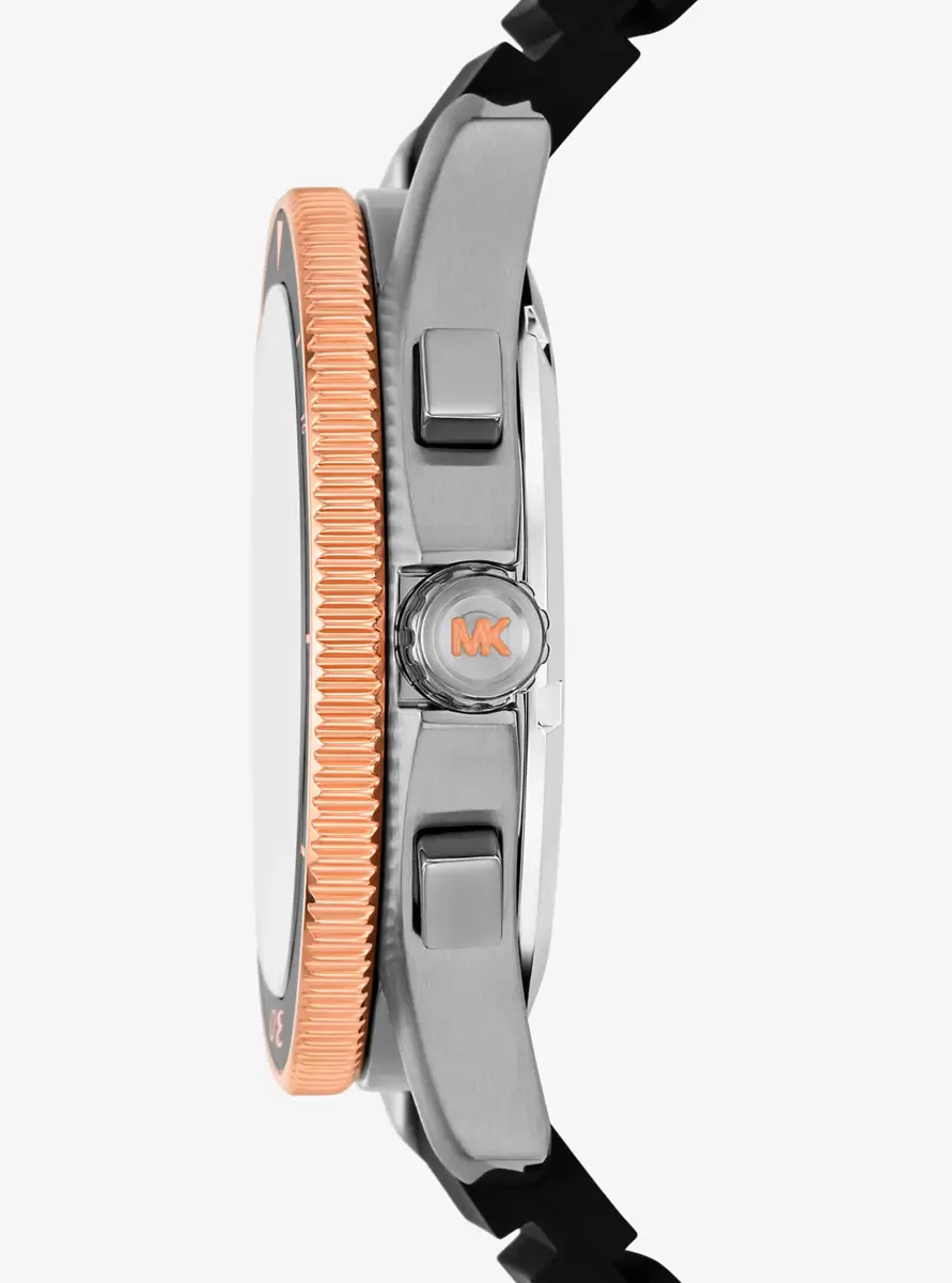 Dive into your next adventure with our maritime watch. Built to be resilient and withstand most underwater conditions, this sporty timepiece will confidently take you up to 200 meters underwater with a screw-down crown mechanism. The adjustable silicone strap wraps securely around the wrist, while the graphic face features a classic 3-hand dial and Super Lume technology that allows the wearer to track time in low light conditions.
