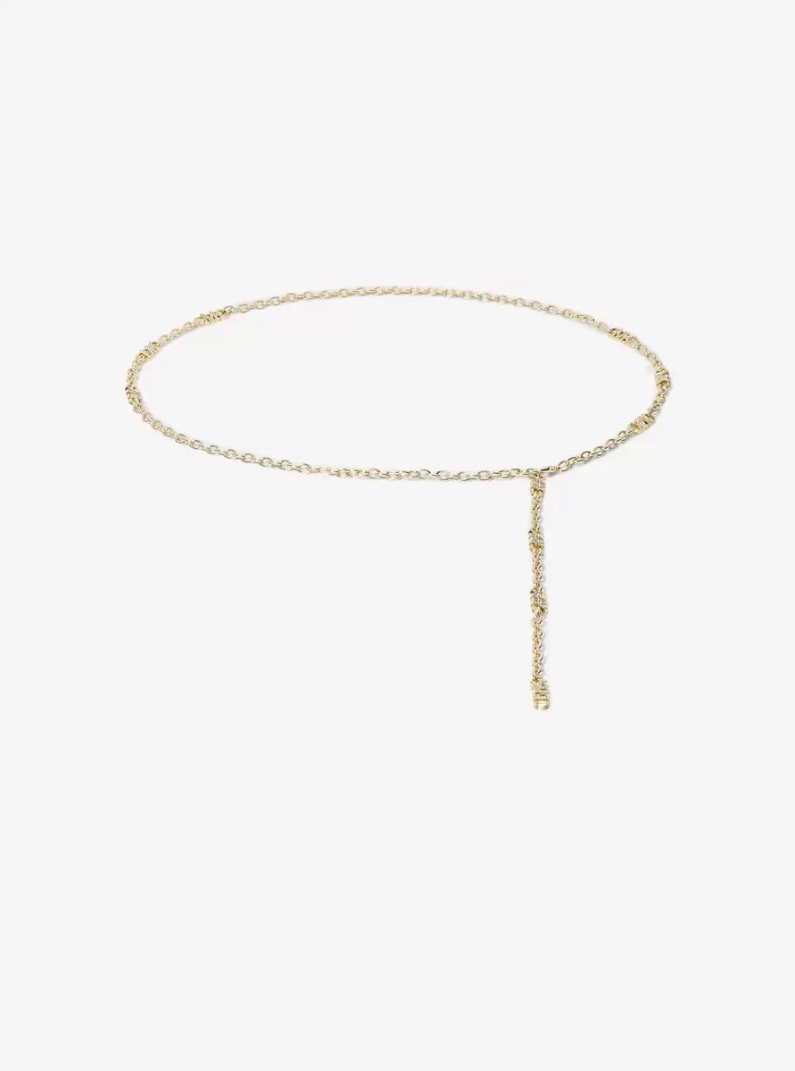 This chain-link belt is punctuated with pavé-encrusted Empire monogram charms and a clasp closure that lets you customize the length for a just-right fit. Wear it to make casual denim night-out ready.