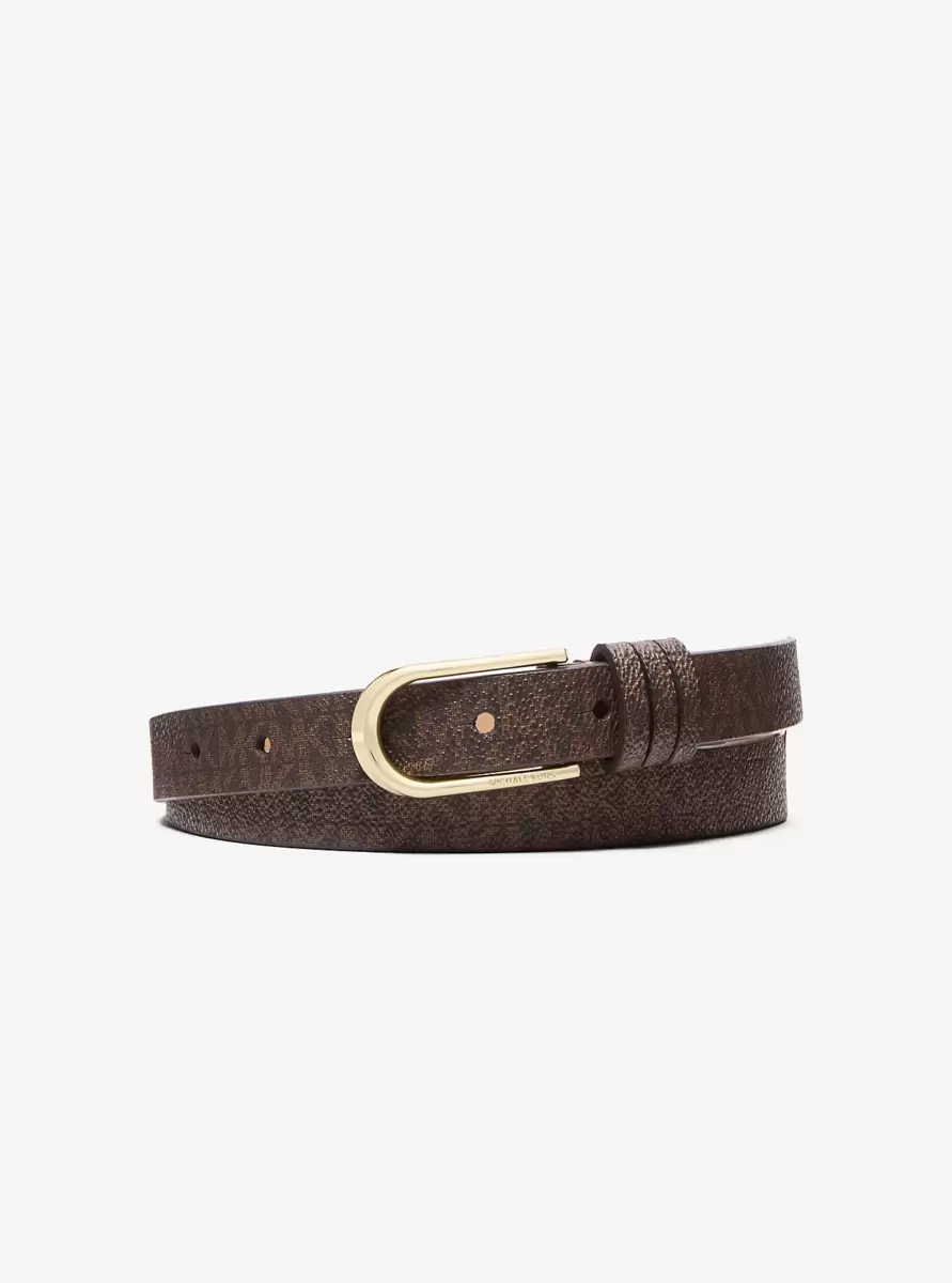 This Signature-print belt is a chic and fail-safe way to top looks off with novelty charm. Made from durable coated canvas, it features ultra-smooth trim and a high-shine geometric buckle. Complement the hardware with gold-tone jewelry.