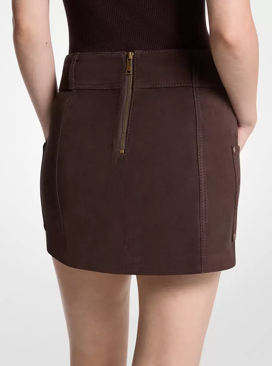 Crafted from luxurious suede, this head-turning mini skirt features gold-tone stud detailing along the waistband and functional front pockets for both style and practicality. Complete the look with the matching fringed jacket for a coordinated Western-inspired ensemble.