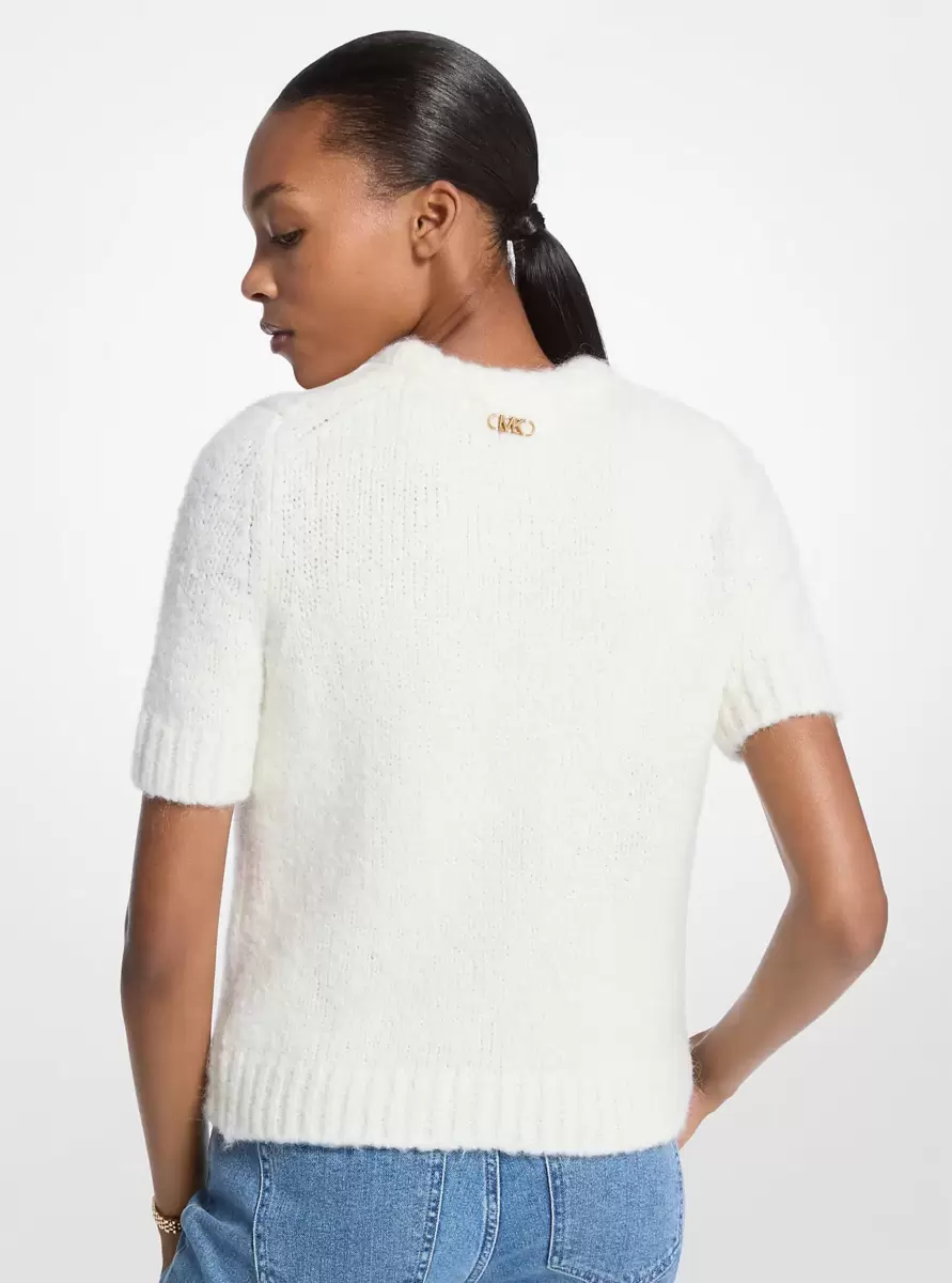 Defined by its plush texture, this otherwise minimal sweater is sure to become a wardrobe favorite. It’s made from a naturally-warm knit, and finished with subtle ribbed trim for added sophisticated. Echo the season’s styling with dark denim or boots.