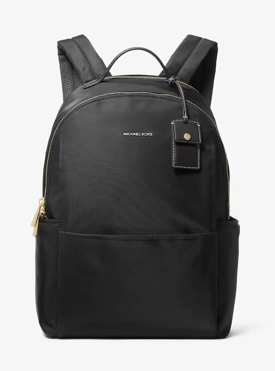 Give your outings a chic upgrade with our Sable backpack. Cut from durable nylon and featuring spacious exterior pockets, it’s perfect for stashing everyday essentials in style. The smooth luggage tag detail adds extra polish.