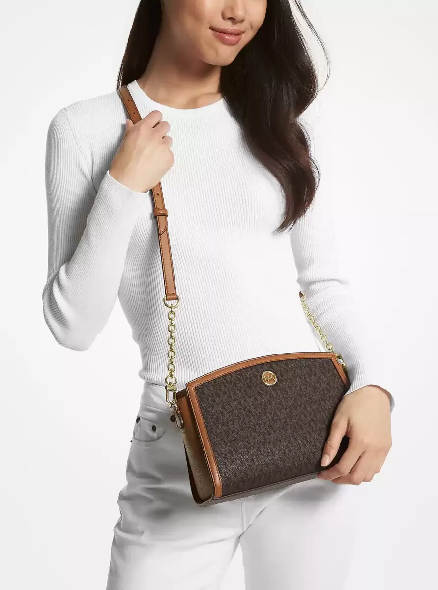 With its structured silhouette and glamorous hardware, our leather-trimmed Chantal messenger bag is a must-have in any sophisticated wardrobe. It’s crafted from Signature Logo print and features a back slip pocket that will safely stow just the essentials. Carry it by the sturdy top handles, or via the detachable crossbody strap on busier days.