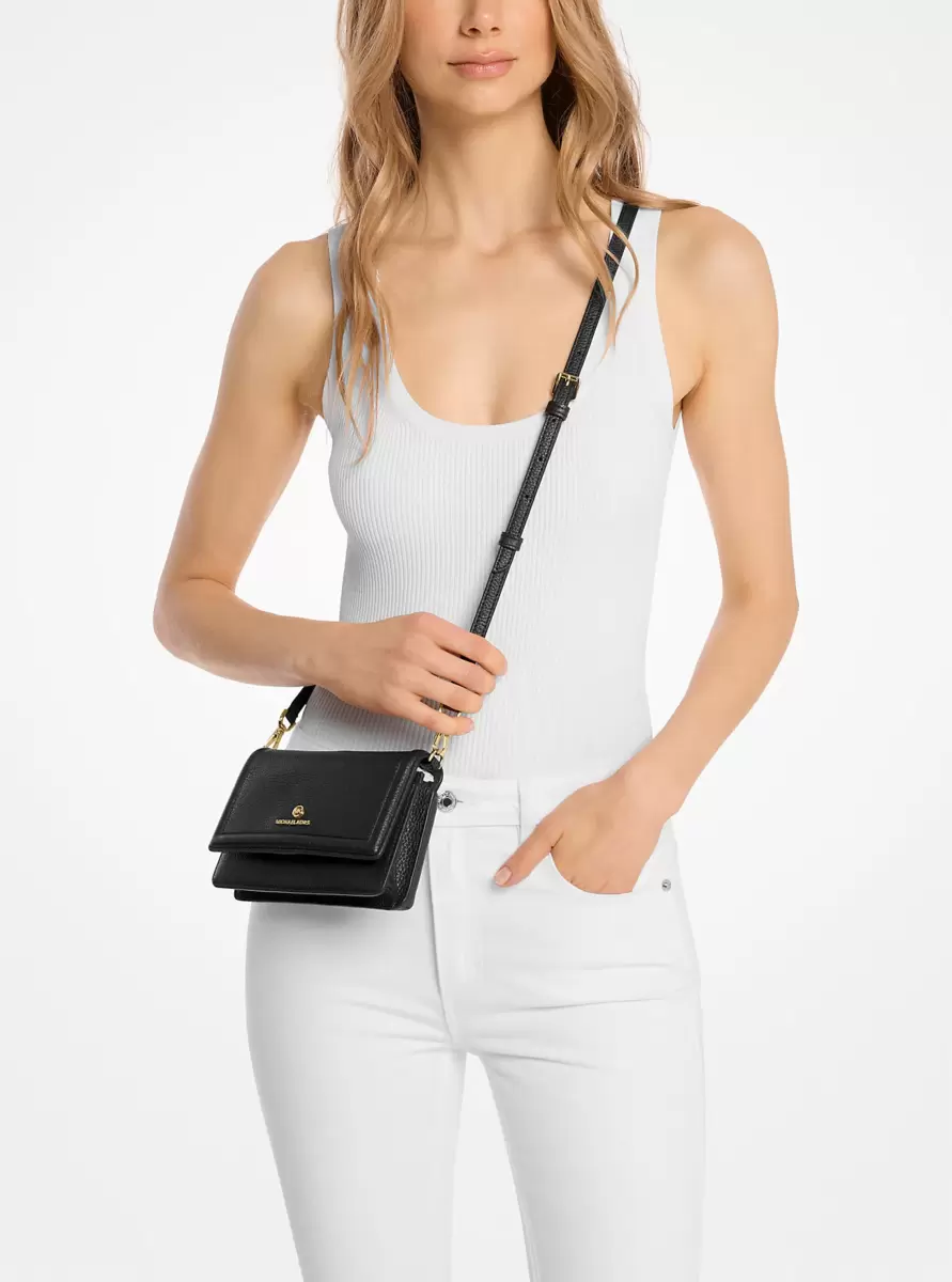 Our Jet Set smartphone crossbody bag is a small wonder. It’s constructed from pebbled leather with polished hardware for a luxe finish, while a back-snap pocket opens to a discreet compartment to safely store your phone. Wear it hands-free on days when you want to travel light.