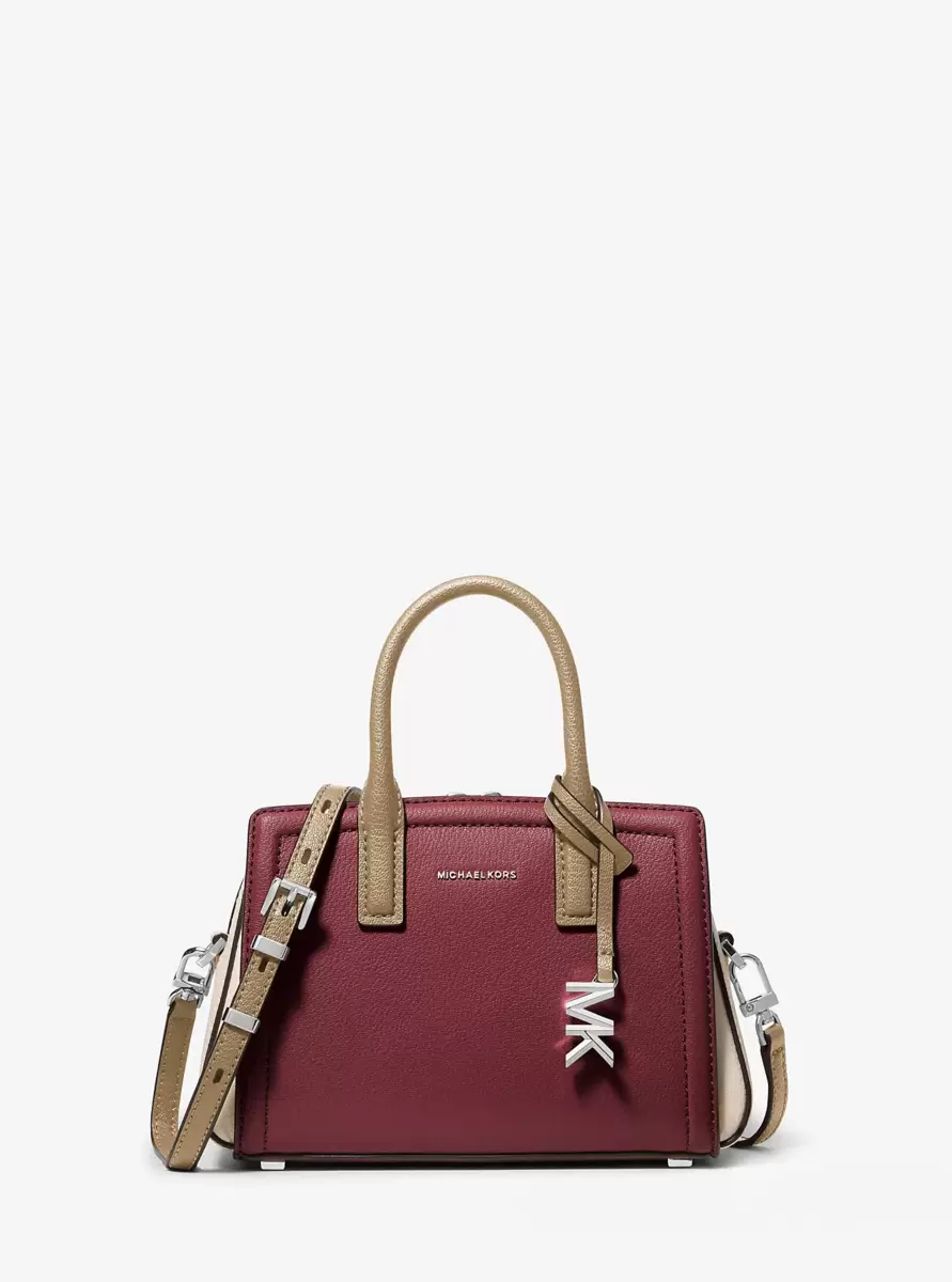 We reimagined the fan-favorite leather Laila satchel in a petite yet functional crossbody silhouette. Complete with an adjustable shoulder strap and color-block finish, this top-handle beauty features a two-way zip fastening that opens to a compartmented interior sized to hold just the essentials and your lipstick. It’s complete with high-shine hardware and has metal feet to prevent scratches.