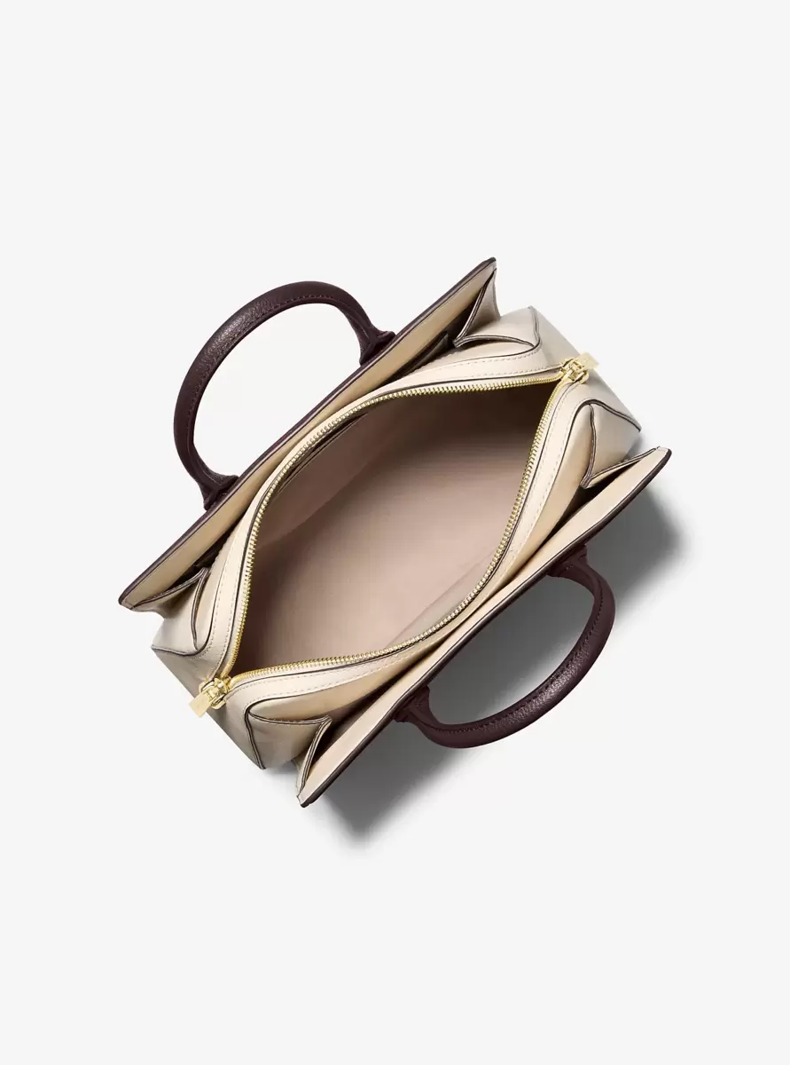 The Laila satchel is made to take you from dawn to dusk with ease. Crafted in a structured silhouette from color-block leather, it opens to a medium-sized interior designed to hold your daily essentials. Adjust the crossbody shoulder strap for the perfect fit.