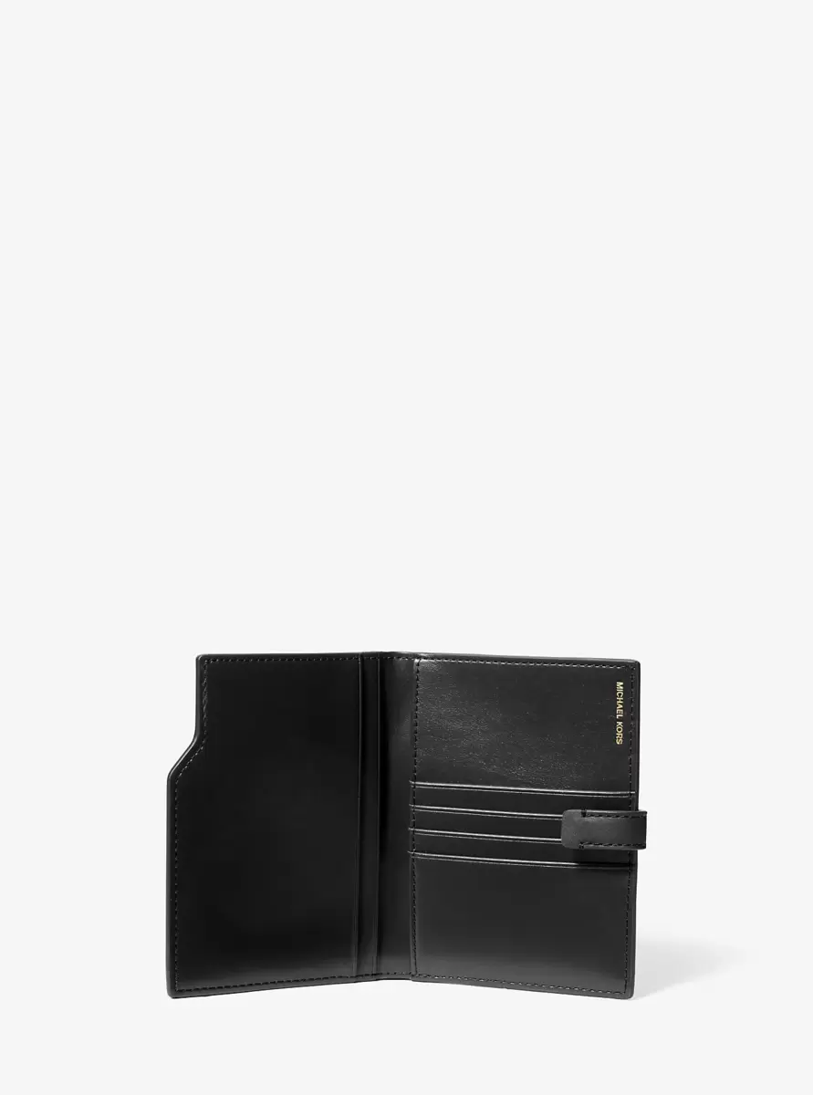 Perfect for the jet-setting traveler, this passport wallet will keep all your essentials organized in style. Expertly crafted from luxurious pebbled leather with a secure tab closure, it features a dedicated compartment for your passport, plus multiple card slots for secure storage. Complete your travel ensemble by pairing it with coordinating accessories from the collection.