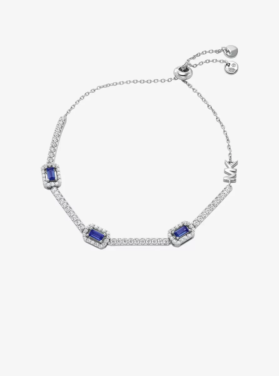 Glamorous by design, this sterling silver bracelet shines with pavé accents and emerald-cut cubic zirconia charms in a bold, eye-catching hue. Wear it solo or layer yours with similar styles from our collection.Glamorous by design, this sterling silver bracelet shines with pavé accents and emerald-cut cubic zirconia charms in a bold, eye-catching hue. Wear it solo or layer yours with similar styles from our collection.