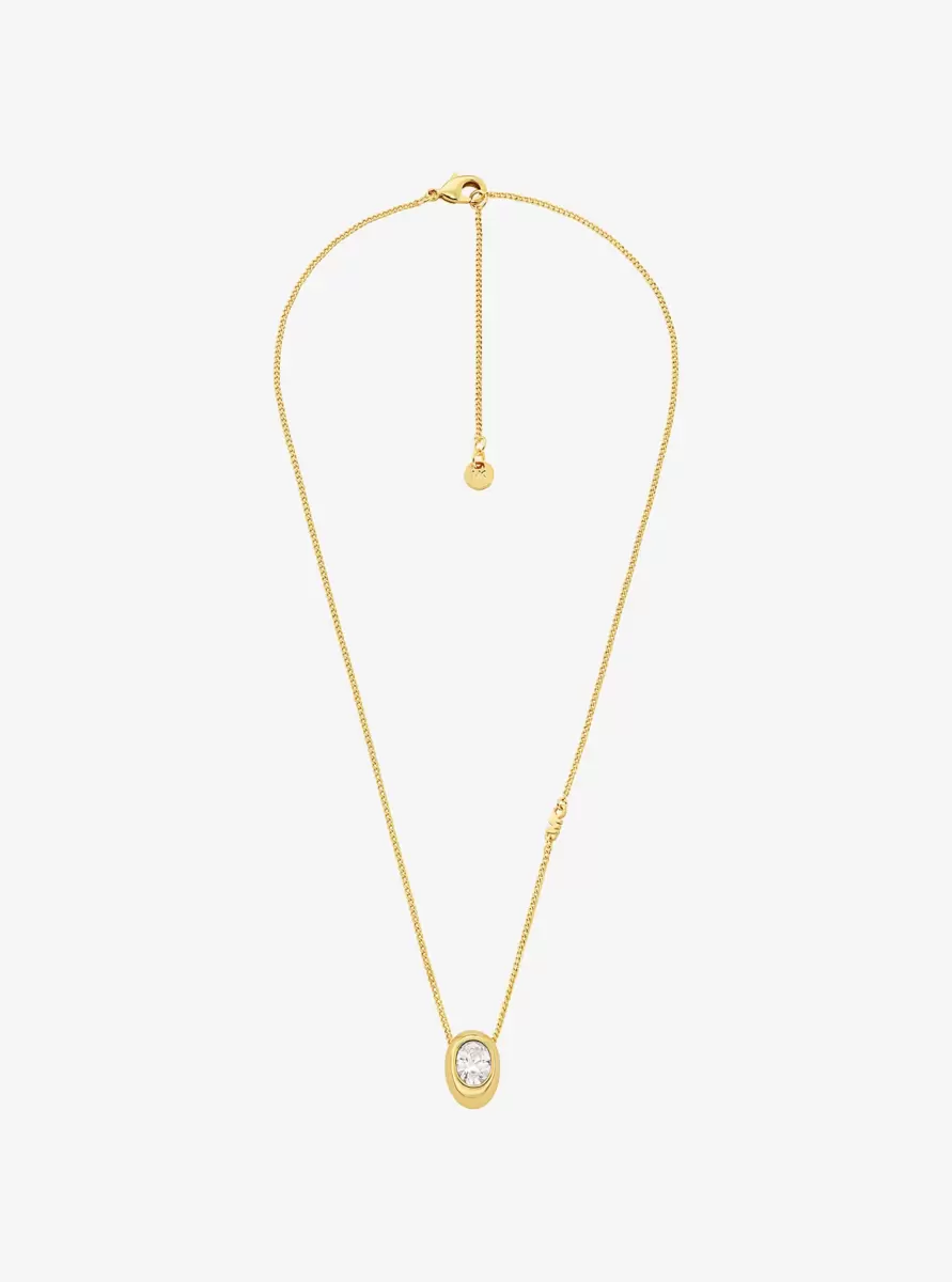 This necklace is the type of timeless piece that works for just about any occasion. Centered on a delicate chain is a gold-tone brass pendant set with an oval-shaped cubic zirconia. Wear it alone for a minimal look, or layer up several to make more of an impact.
