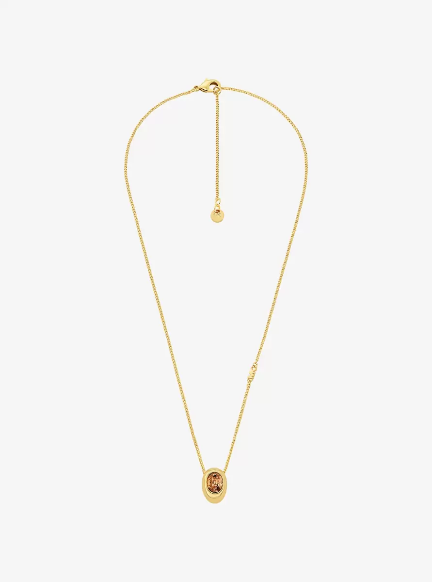 This necklace is the type of timeless piece that works for just about any occasion. Centered on a delicate chain is a gold-tone brass pendant set with a colored oval-shaped cubic zirconia. Wear it alone for a minimal look, or layer up several to make more of an impact.