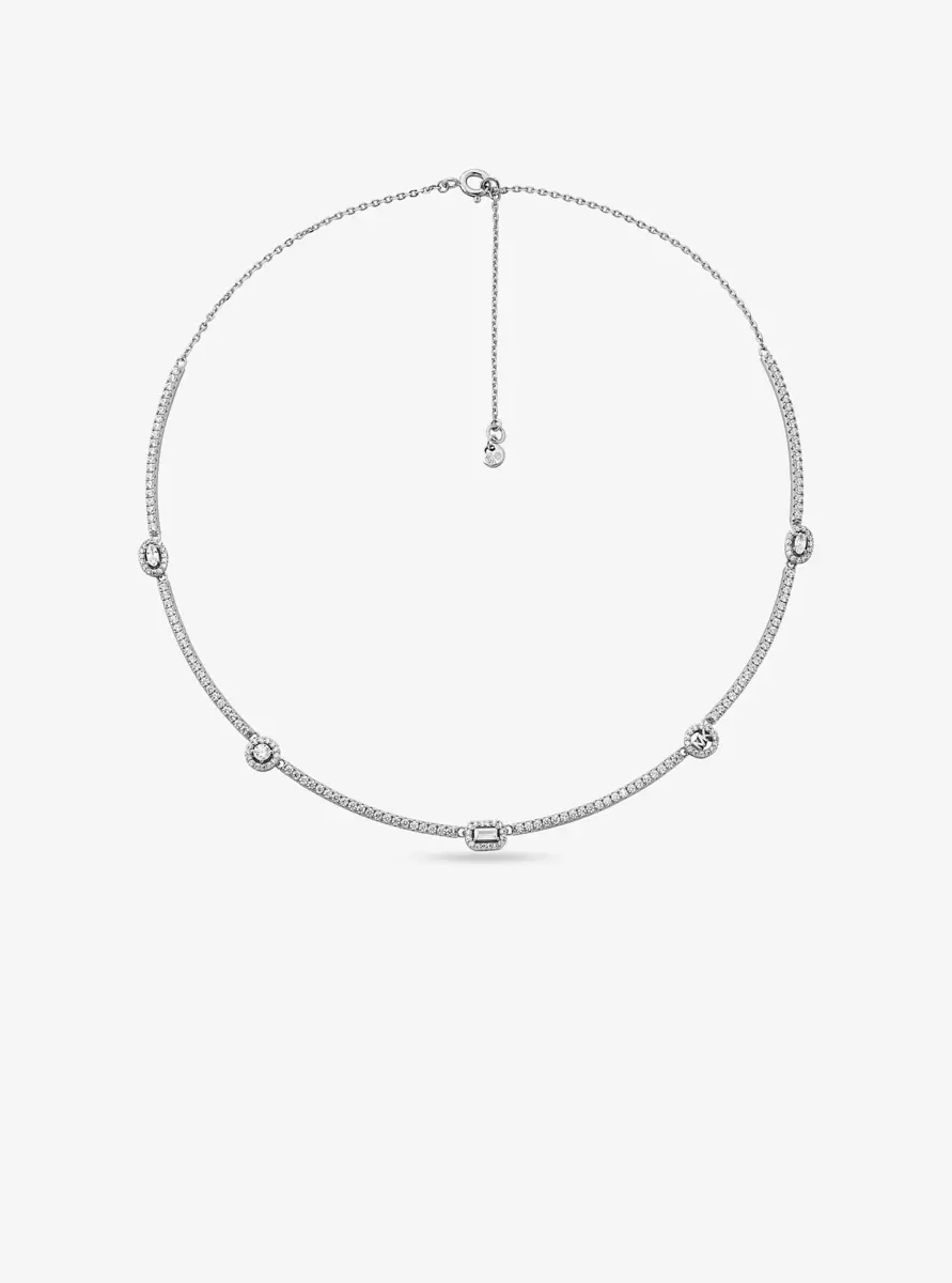 Glittering pavé animates this precious metal-plated necklace, while faceted cubic zirconia and a subtle initial charm lend it scale and drama. Designed with an adjustable clasp, it falls at the collarbone for an elegant look.