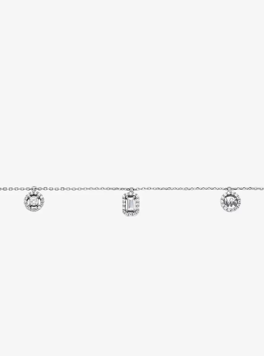 Delicate yet dazzling, this necklace catches the light thanks to a mix of sparkling cubic zirconia charms. It’s made from precious metal-plated sterling silver and layers well with other chains from our collection. An adjustable slider clasp lets you customize the length to suit your neckline—and your mood