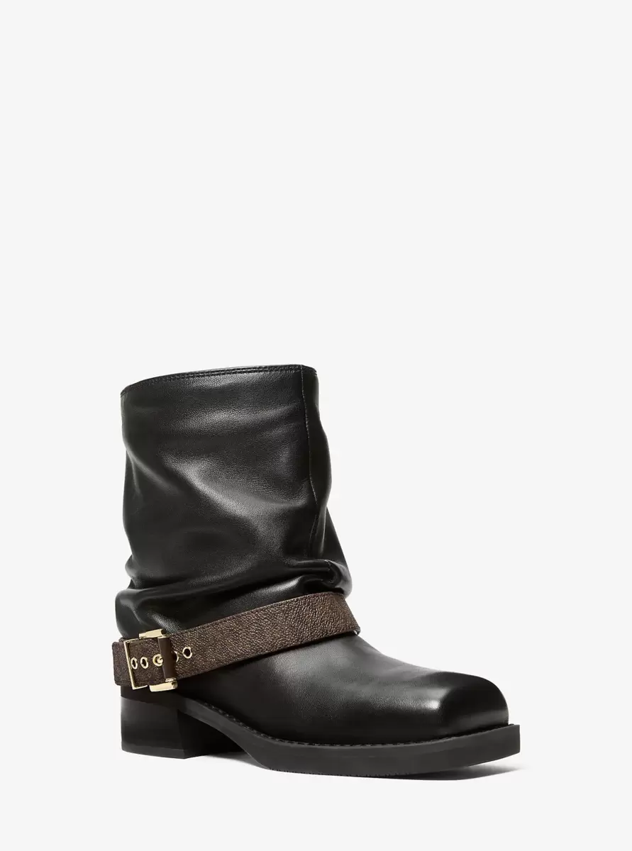 The moto boot gets a chic reinterpretation via the Colby bootie. Rendered in smooth leather with a slouchy shaft and a Signature logo print canvas buckle strap, they ground everything from denim to flowing dresses.