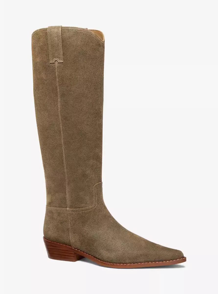 Our Nash boot is a Western-inspired style with sleek, city-ready flair. Crafted in rich suede, it features minimal detailing, a sharply pointed toe, and a sturdy stacked heel. Juxtapose its structure with a free-flowing dress or skirt.