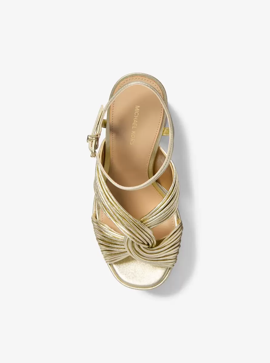 Channel retro glamour in our Alessia platform sandal. This soaring style takes looks to new heights in a smooth metallic exterior with textural straps that frame the foot and create added interest. Show it off with a mini hemline for your next night out.