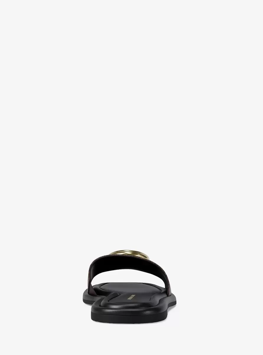 Combining our Signature print with a polished logo charm, our Milan sandal is a fresh take on the summer slide. A slight heel provides just a little lift. Wear them with wide-leg pants or shorts for an effortless vacation look.