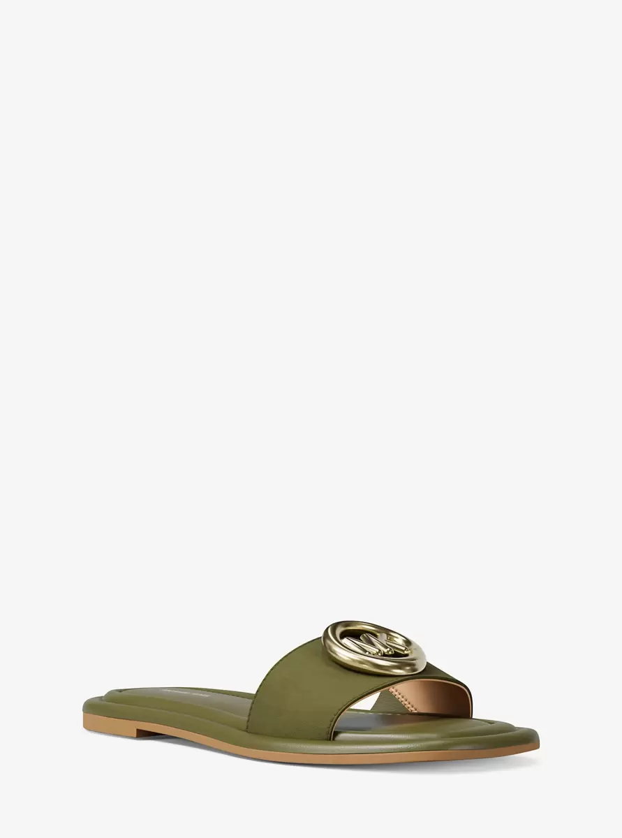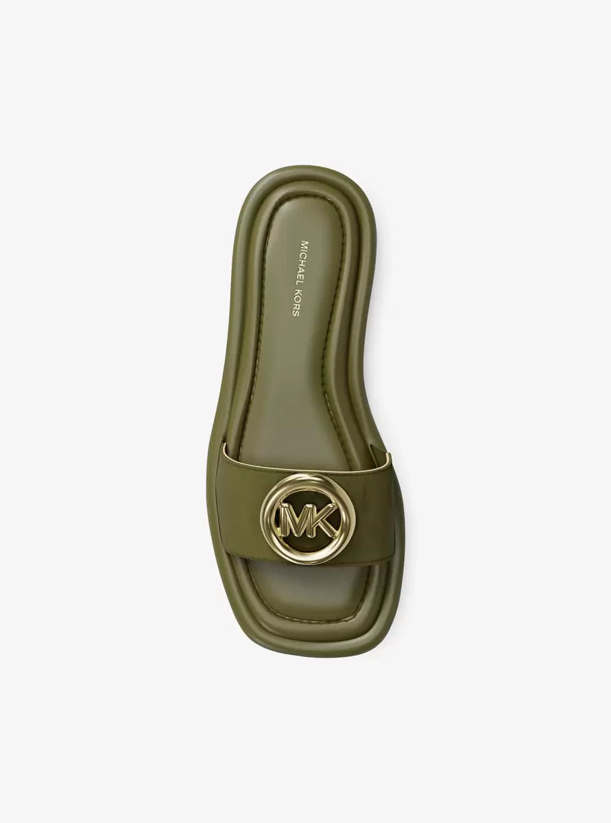 Combining smooth leather with a polished logo charm, our Milan sandal is a fresh take on the summer slide. A slight heel provides just a little lift. Wear them with wide-leg pants or shorts for an effortless vacation look.