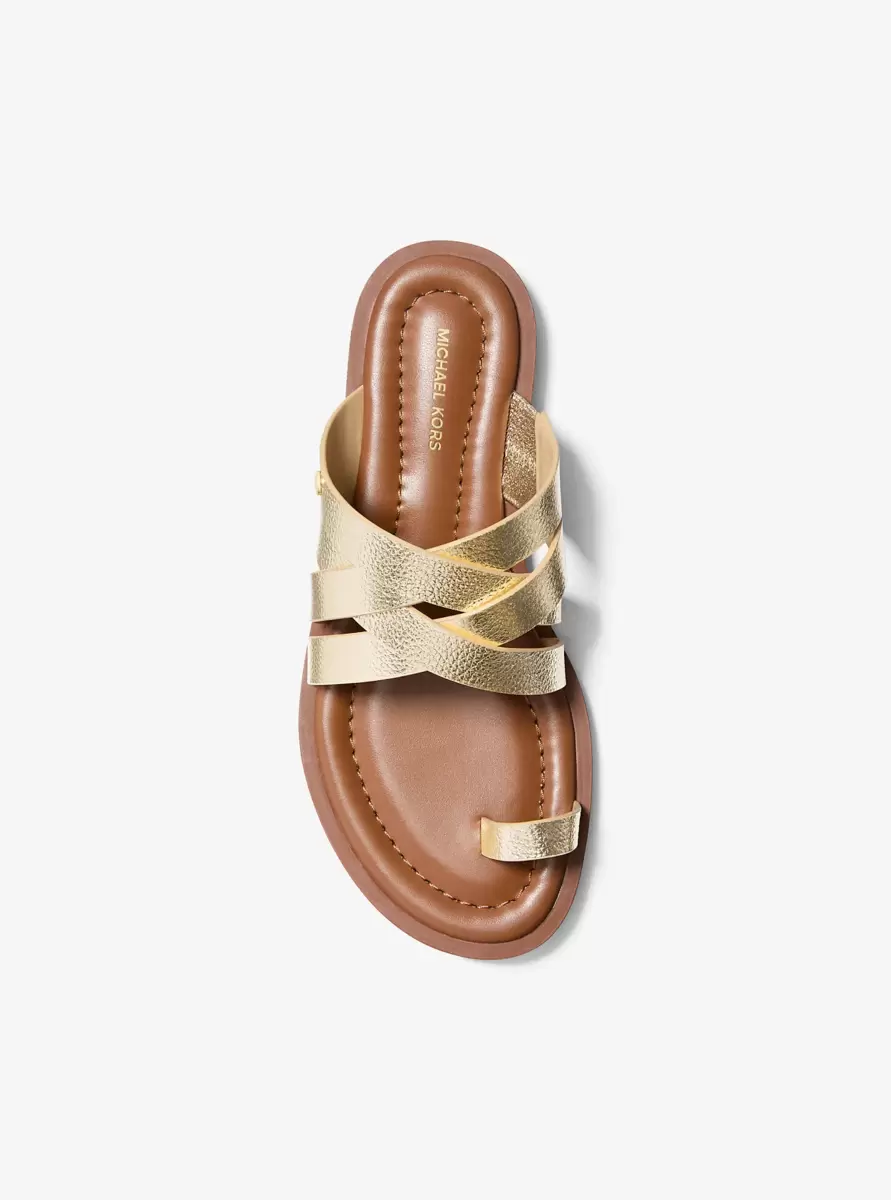 • Metallic pebbled leather