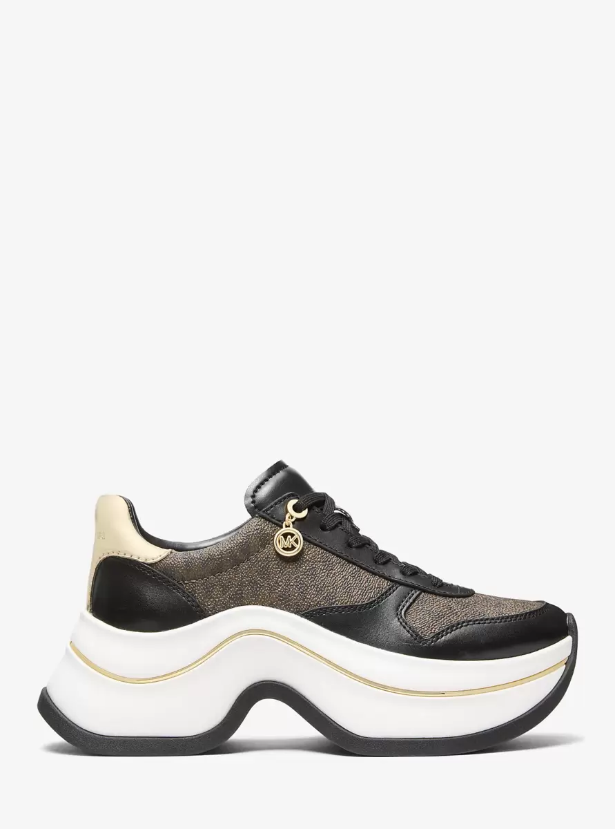 The Arla trainer is cool, confident and made to move. Set on a chunky rubber sole, this standout style is made of leather and logo-print canvas in a lace-up design topped with our logo charm for an extra hit of shine. Lace it up to add a bold twist to everything from off-duty denim to chic dresses.