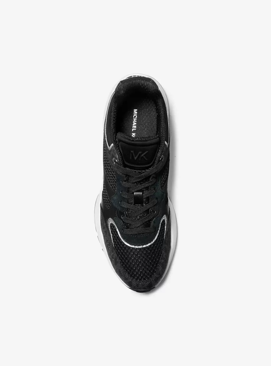 Our Riley trainers feel sporty yet sophisticated in a low-profile design crafted from a mix of Signature logo-print canvas, smooth and mesh. Style them with a sleek workout set or chic loungewear when you’re out and about.