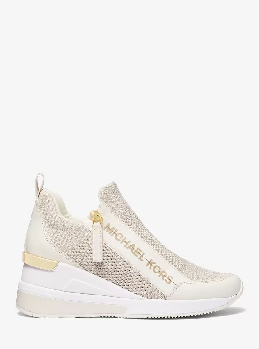 Defined by our brand lettering along the side, the Willis wedge trainer will kick any look up a notch. This pair is crafted from metallic stretch knit for a breathable fit and feel, while a zip fastening makes them easy to slip on and off. Wear yours with coordinating athletic separates for a casual-cool look.