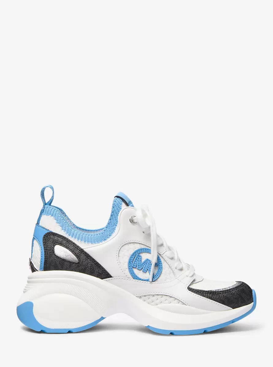 The Zuma trainer goes for the bold. Defined by exaggerated rubber soles and a sock-like cuff, they feature an eye-catching mix of color-blocked leather, mesh and Signature logo-print canvas with metallic accents. For an unexpected pairing, wear them with an oversized blazer-and-pant set.