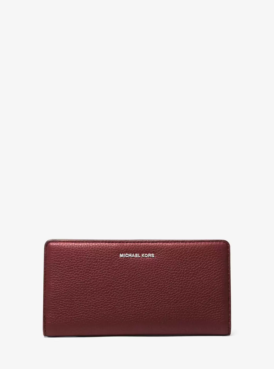 The Bryant is the perfect travel accessory. Crafted from pebbled leather, this snap-front wallet opens to reveal a wealth of dedicated pockets for your cards and a zip pocket on the back for loose change. The slim, compact design can easily be tucked into your favorite handbag, or carried in hand on its own.