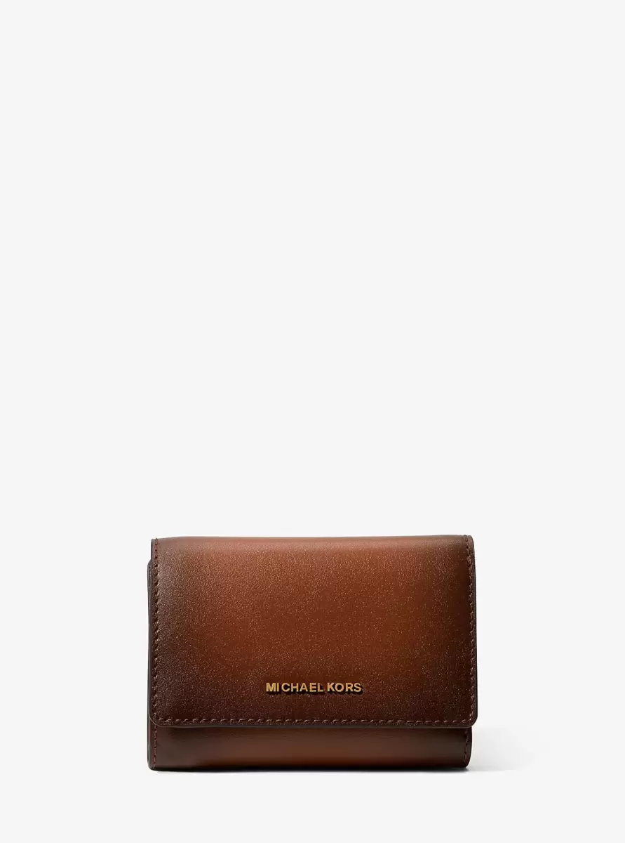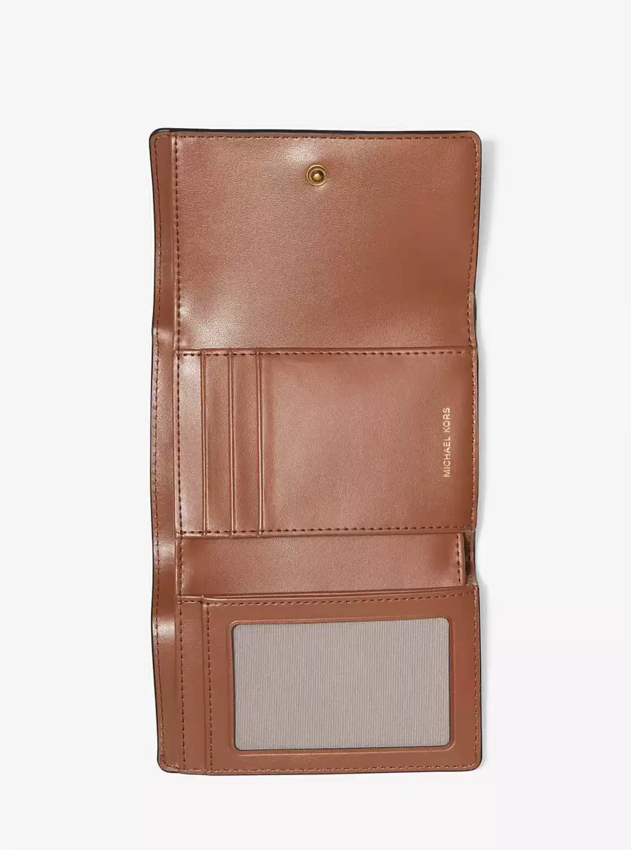 Our Bryant wallet boasts a tri-fold shape for maximum storage in a minimal design. Made from burnished leather, it’s punctuated with our high-shine hardware at the front and opens to reveal an array of card slots and a billfold compartment. The understated design will make it the perfect match for your most-used carryalls.