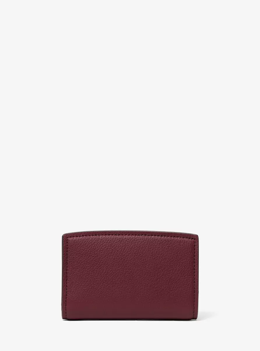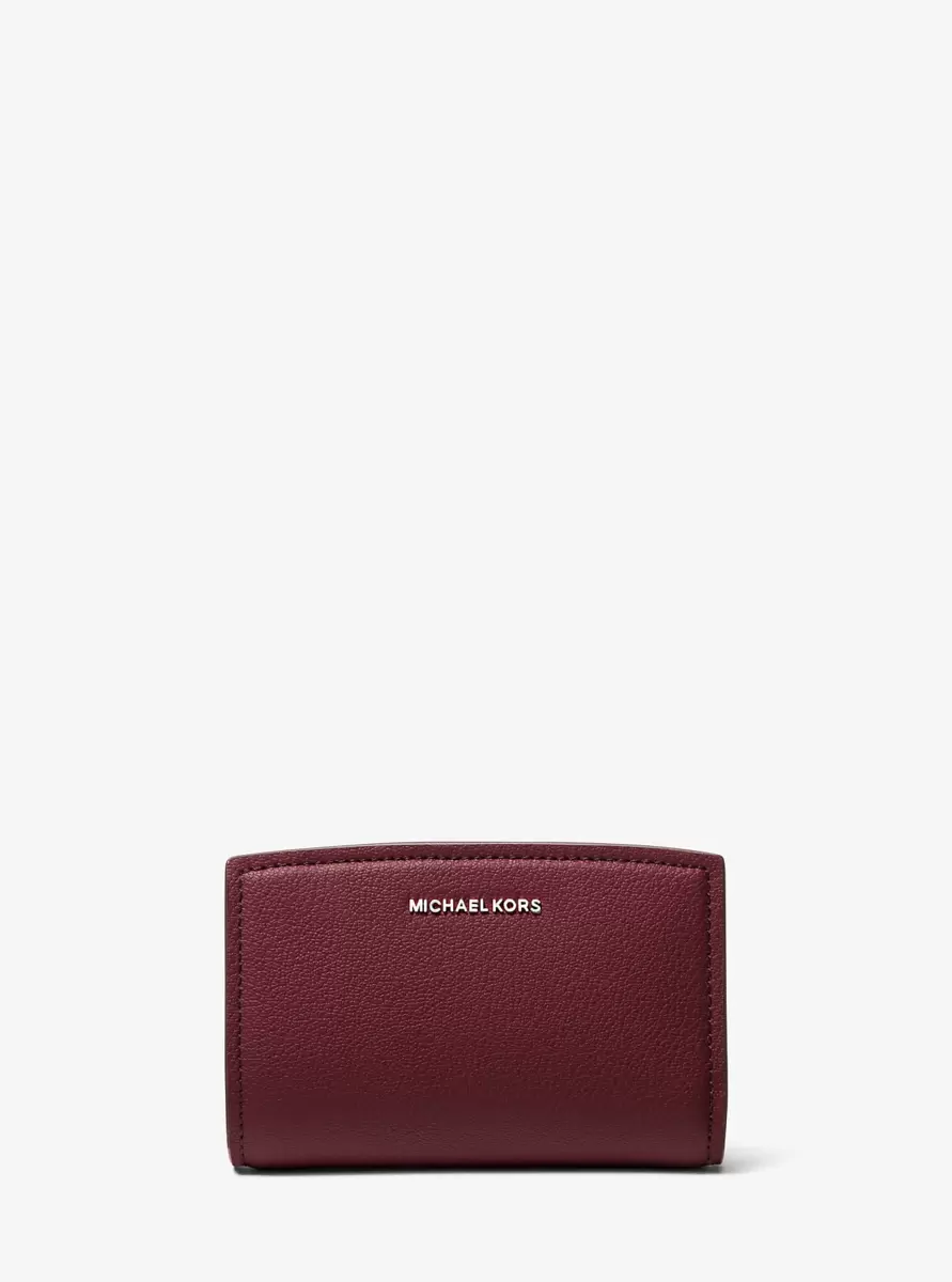 This leather wallet is one of the chicest ways to keep your essentials in check. Complete with a snap-button fastening, it features a dedicated pocket for your ID, plus added storage for cards, receipts and bills. Slip the medium-sized accessory into your daily carryall, or carry it in hand when on the go.