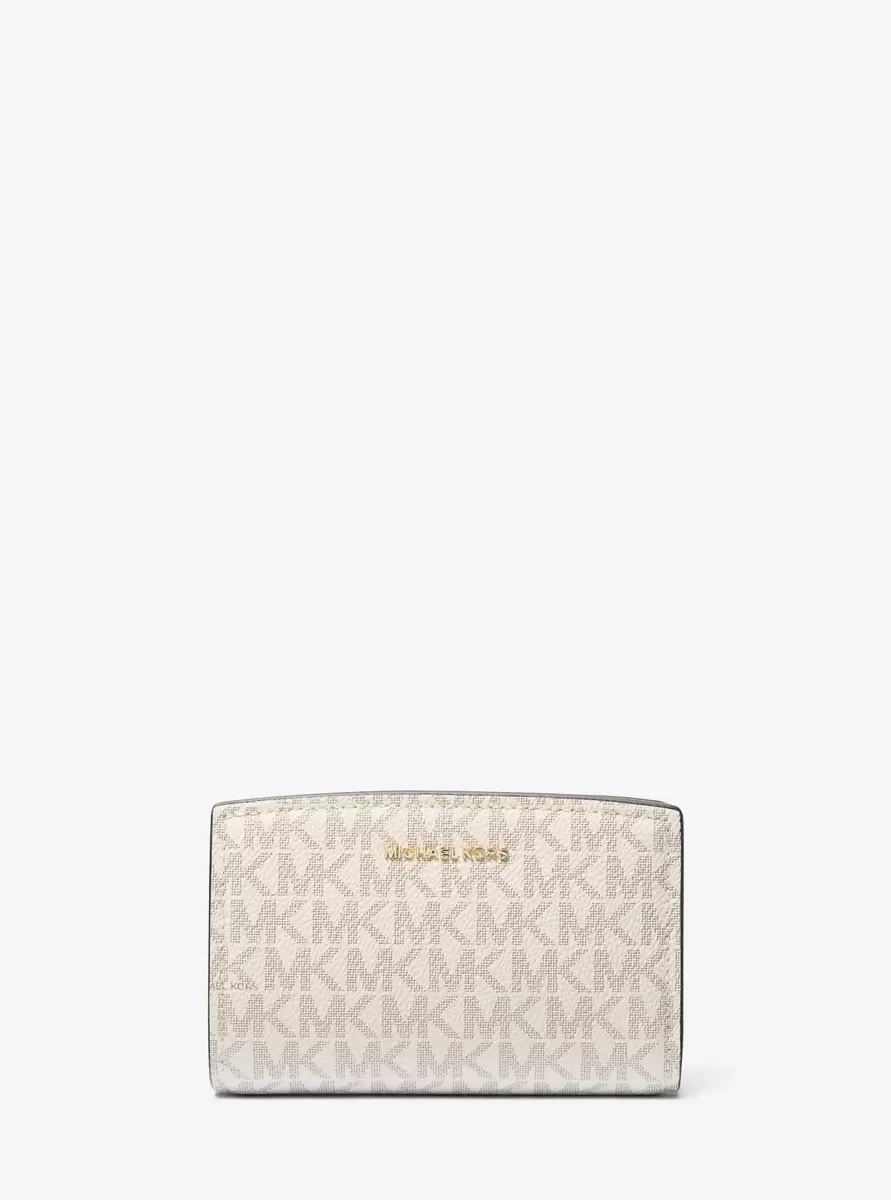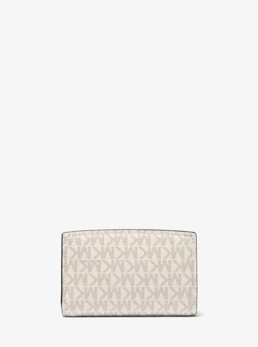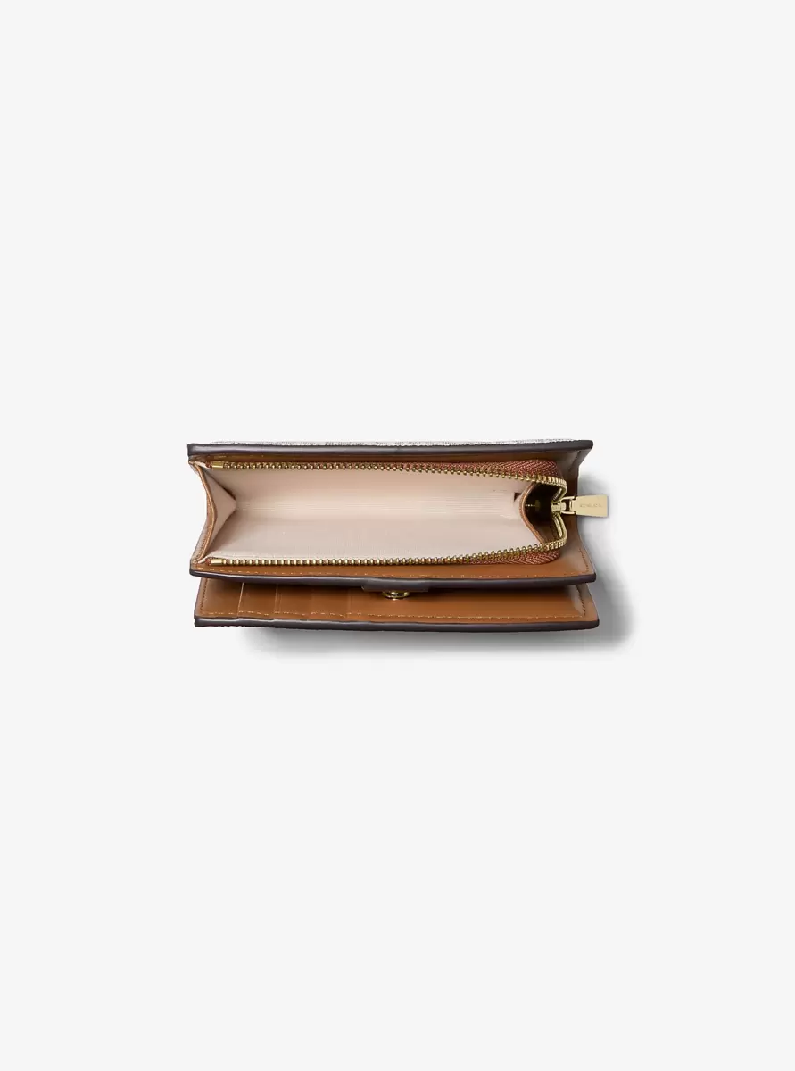 This Signature-print wallet is one of the chicest ways to keep your essentials in check. Complete with a snap-button fastening, it features a dedicated pocket for your ID, plus added storage for cards, receipts and bills. Slip the medium-sized accessory into your daily carryall, or carry it in hand when on the go.