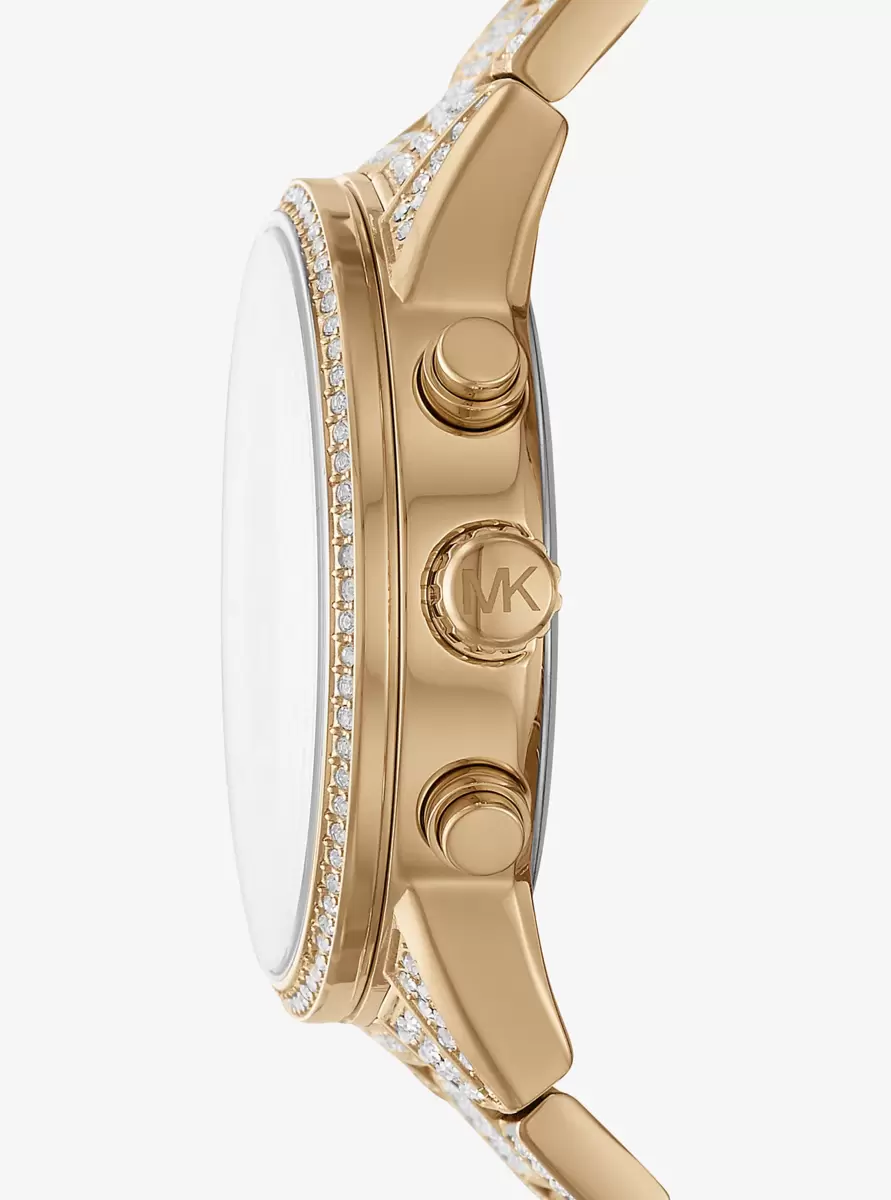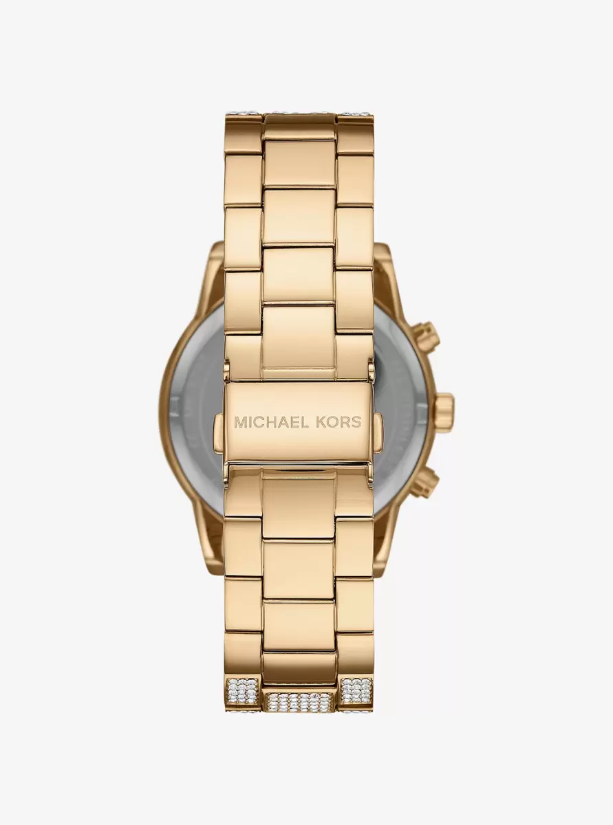 Radiant and refined, the Bryant watch combines gold-tone stainless steel with a menswear-inspired bracelet strap for a chic and timeless finish. The chronograph display lends functionality, while allover pavé embellishments deliver maximum shine.