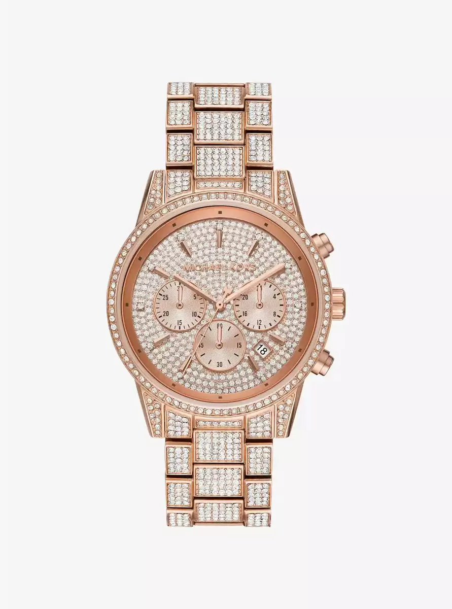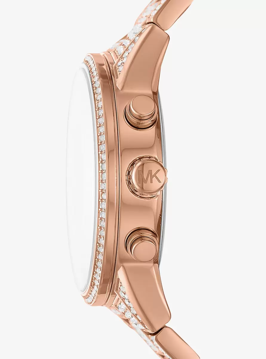 Radiant and refined, the Bryant watch combines rose gold-tone stainless steel with a menswear-inspired bracelet strap for a chic and timeless finish. The chronograph display lends functionality, while allover pavé embellishments deliver maximum shine.