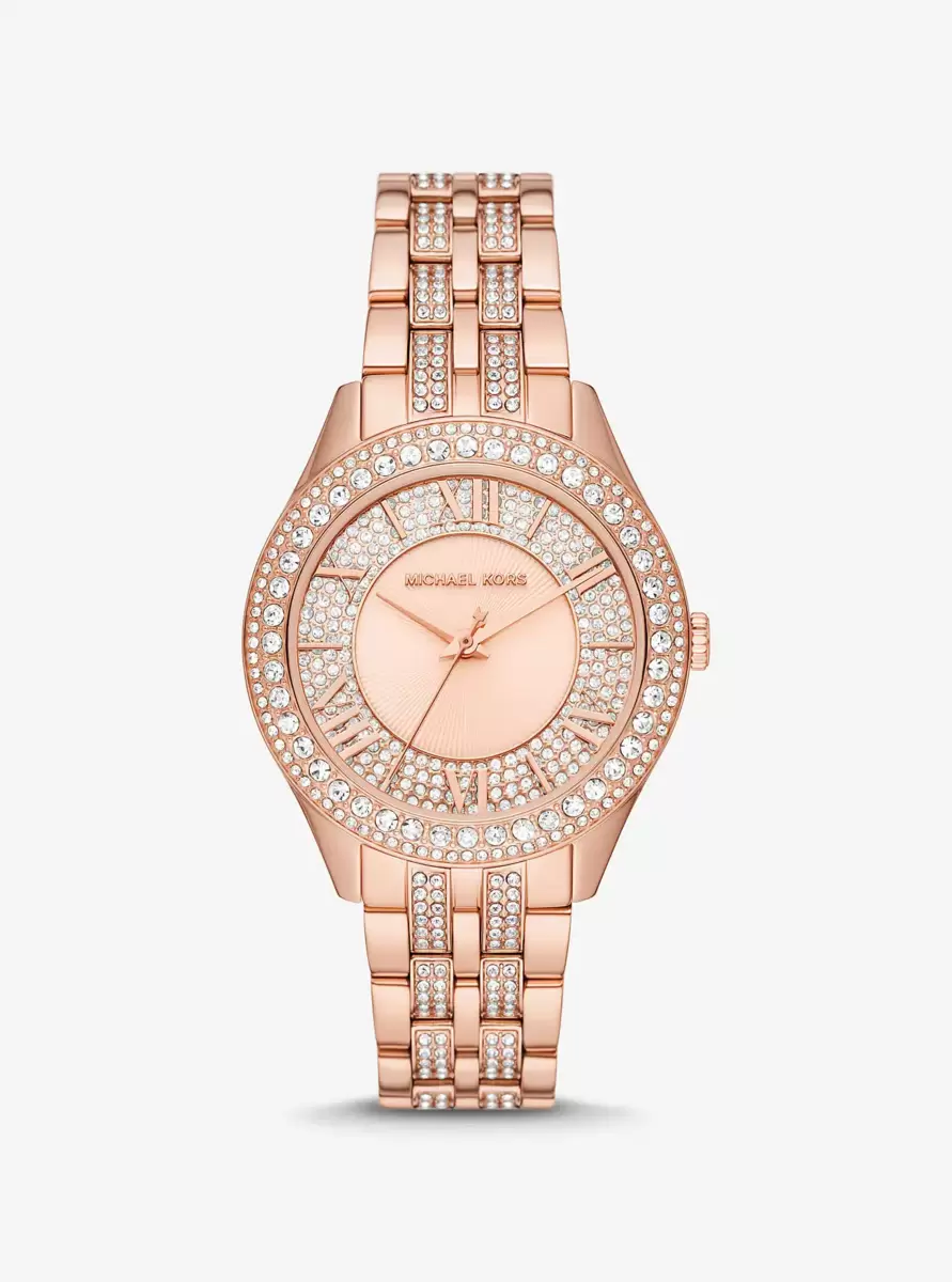 Both pragmatic and glamorous, the Harlowe watch features a menswear-inspired bracelet strap and a sleek dial with classic Roman numeral indexes. Allover pavé accents add an extra dose of shine. Let it be the everyday timepiece you rely on.